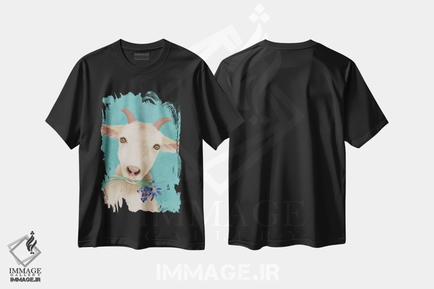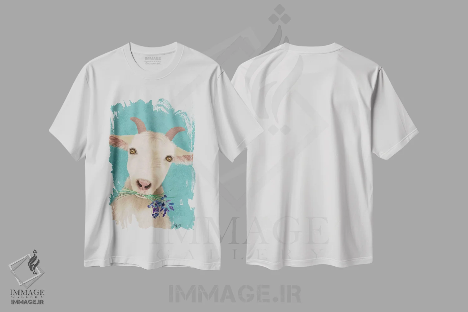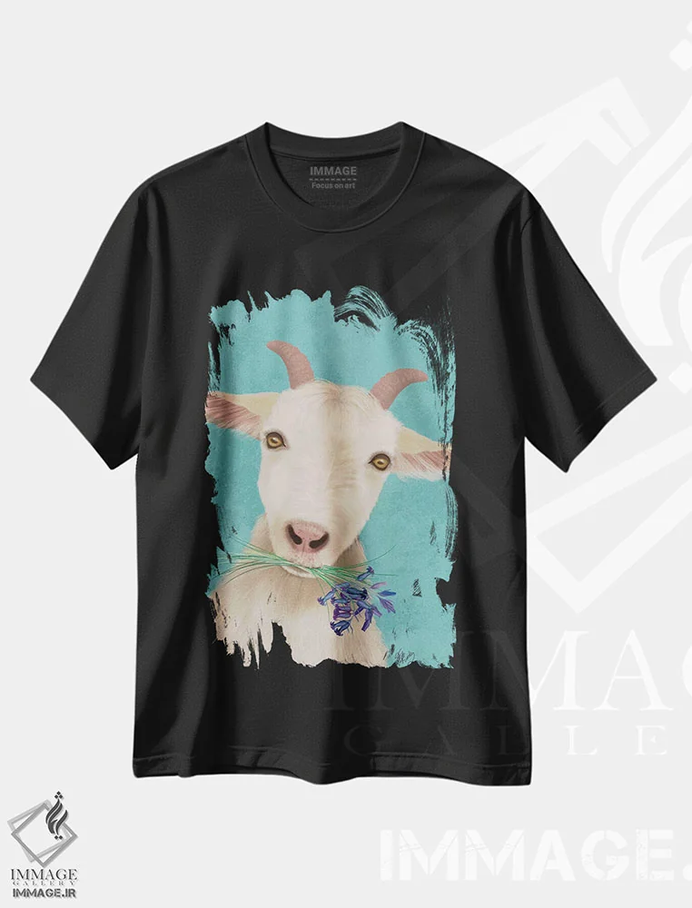 تی شرت بز و گل های ناقوسی آبی؛ ترکیب روستایی و هنری