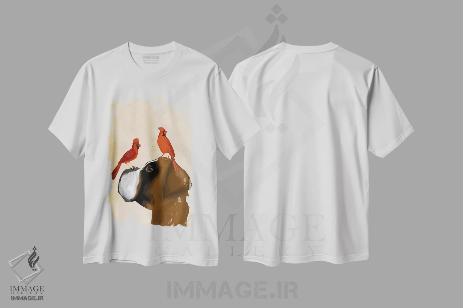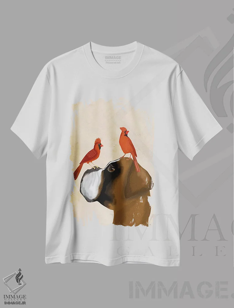 تیشرت سفید طرح دار بوکسر و کاردینال های قرمز، هنر دیجیتال اثر فب فانکی | immage.ir