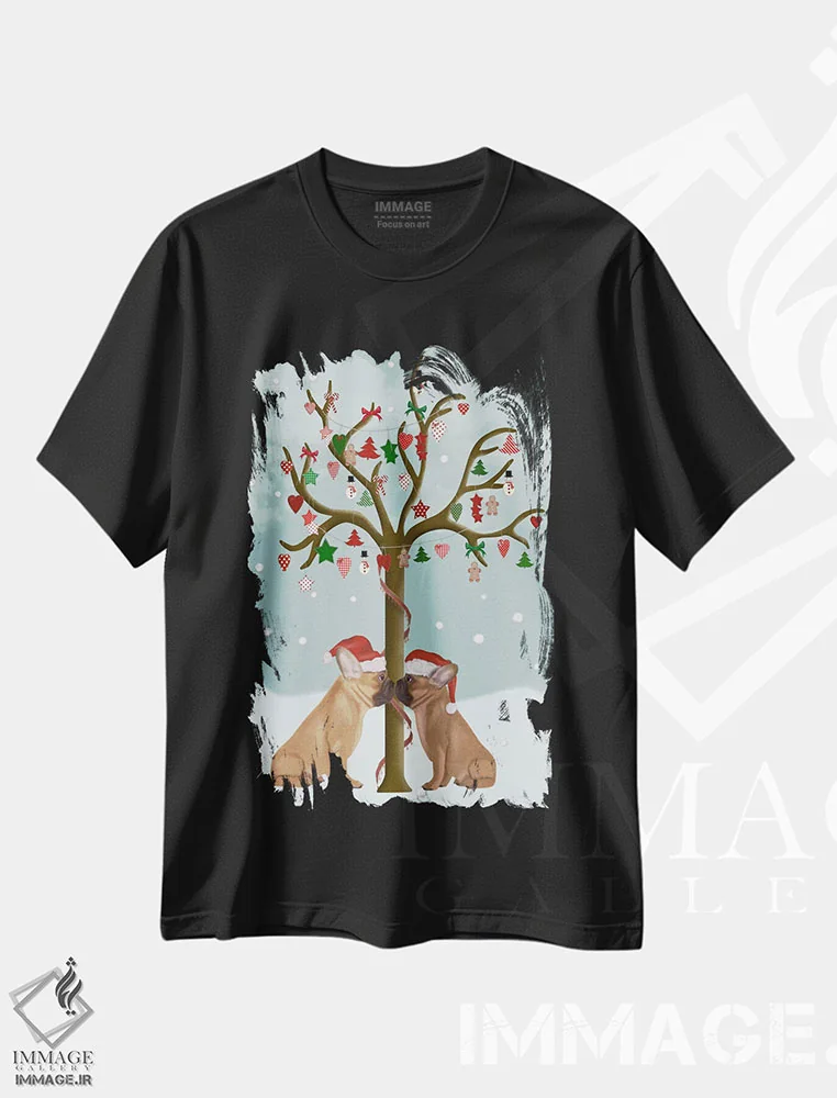 تی شرت کریسمسی «بولداگ های فرانسوی و درخت جشن»؛ استایل زمستانی