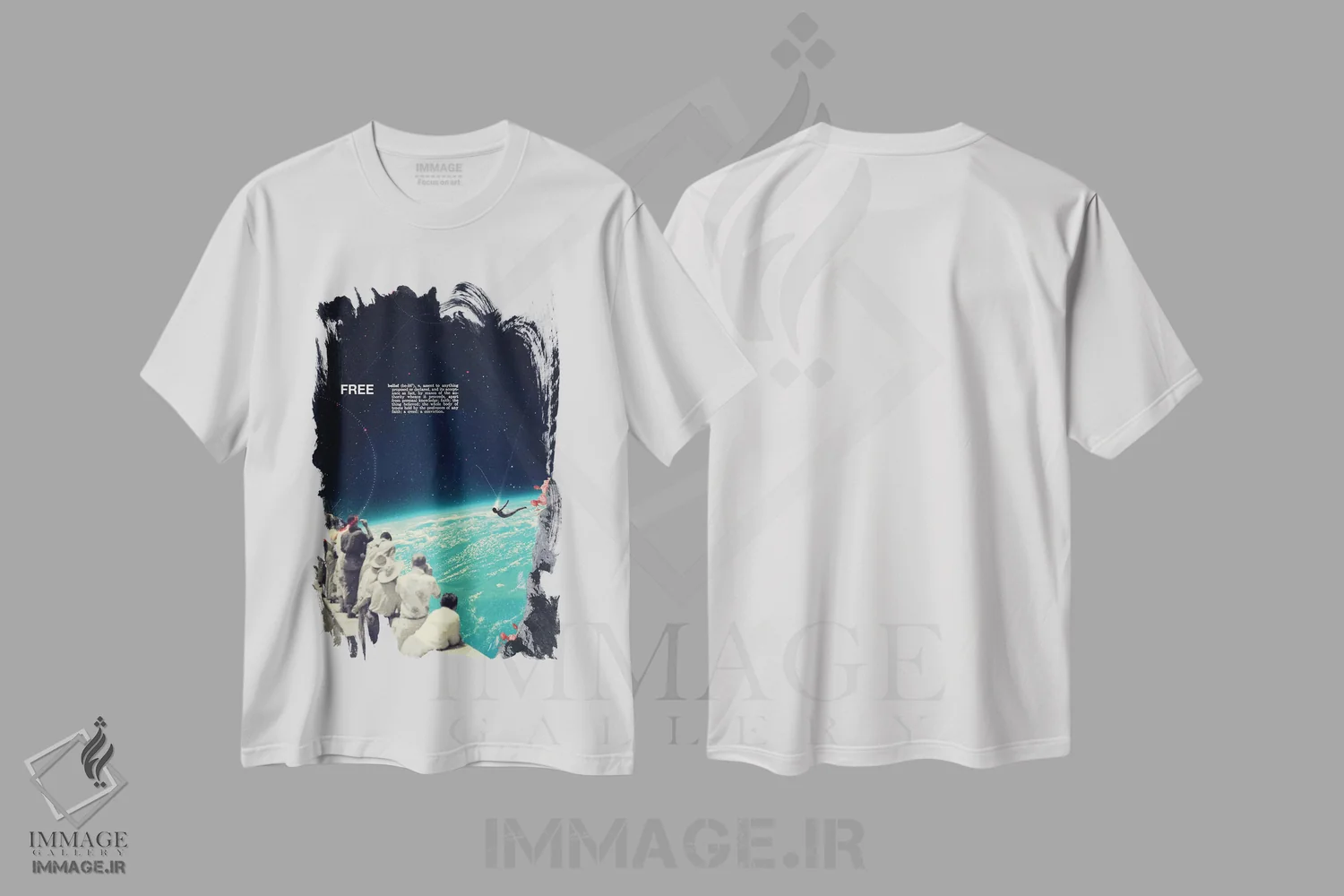 تیشرت سفید طرح دار "آزاد"، هنر فاخر معاصر اثر فرانک موس | فروشگاه ایماژ