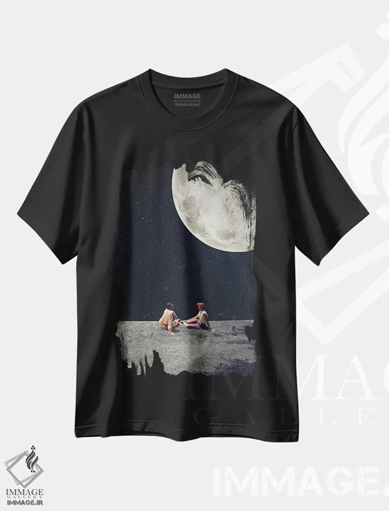 تیشرت مشکی طرح دار "ماه را برای یک لبخند به تو دادم"، هنر فاخر معاصر اثر فرانک موس | immage.ir