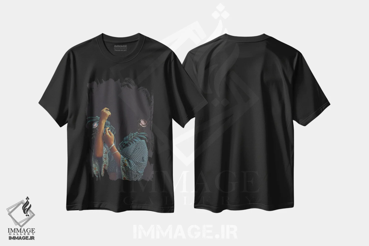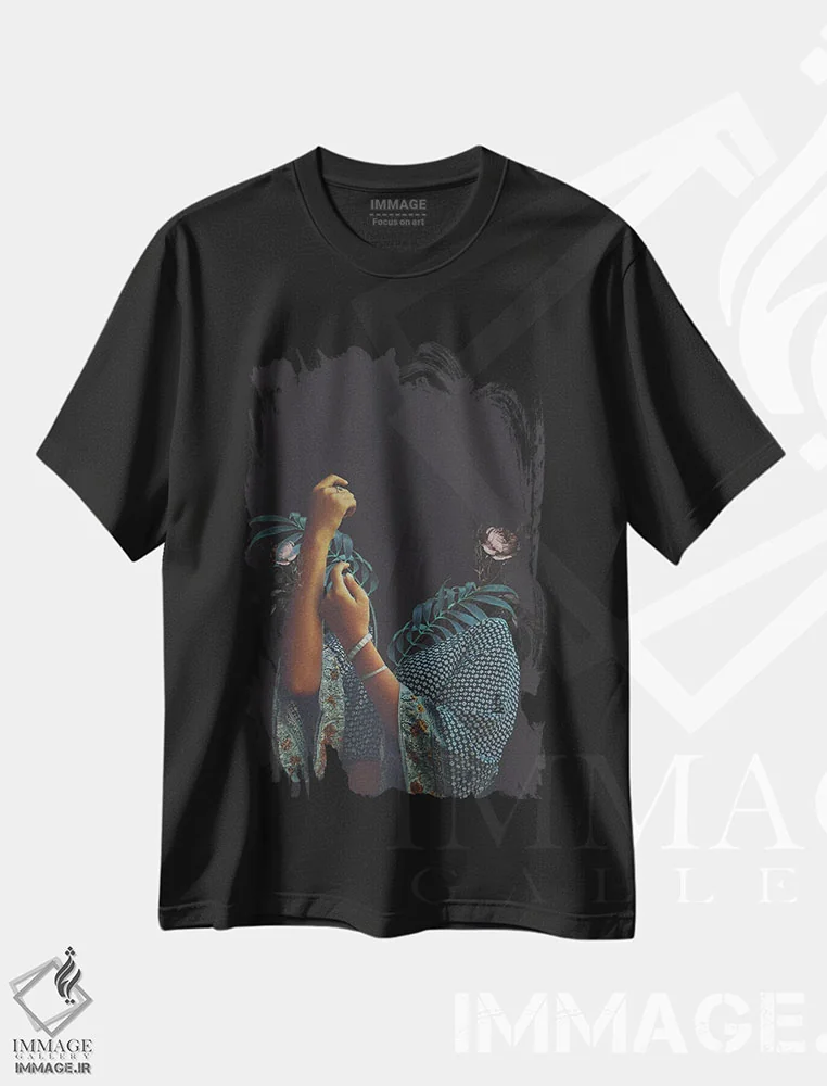 تی شرت زنانه «ثانیه هایی پیش از سپیده دم» با طرح گل رز