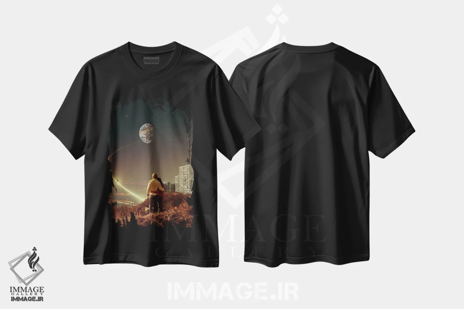 تیشرت مشکی طرح دار "ما هم آنجا زندگی می کردیم"، هنر فاخر معاصر اثر فرانک موس | فروشگاه ایماژ