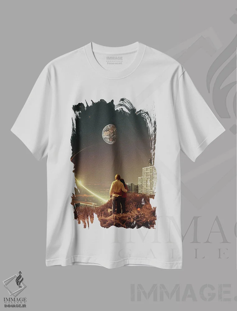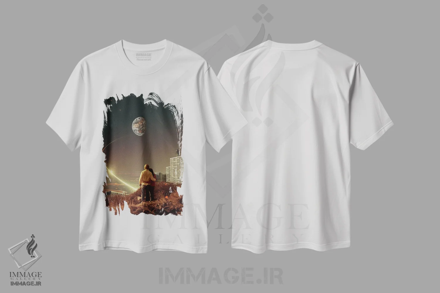 تیشرت سفید طرح دار "ما هم آنجا زندگی می کردیم"، هنر فاخر معاصر اثر فرانک موس | immage.ir
