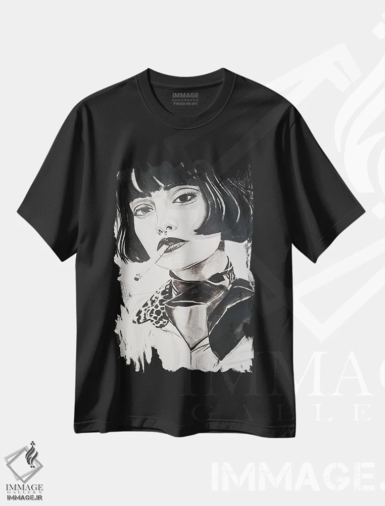 تیشرت مشکی طرح دار وقفه ای از کار، هنر تزئینی سیاه و سفید اثر گیل لبلو | immage.ir