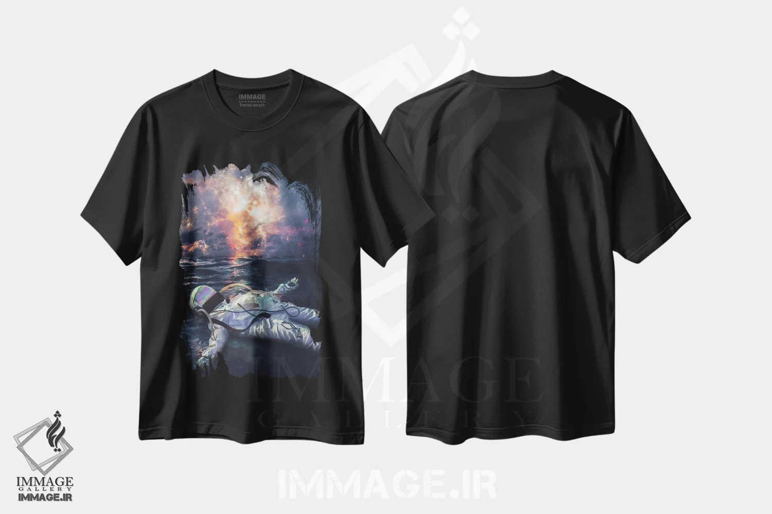 تیشرت طرح دار فضانورد شناور در اقیانوس روبروی کهکشان آسمان اثر جن زد
