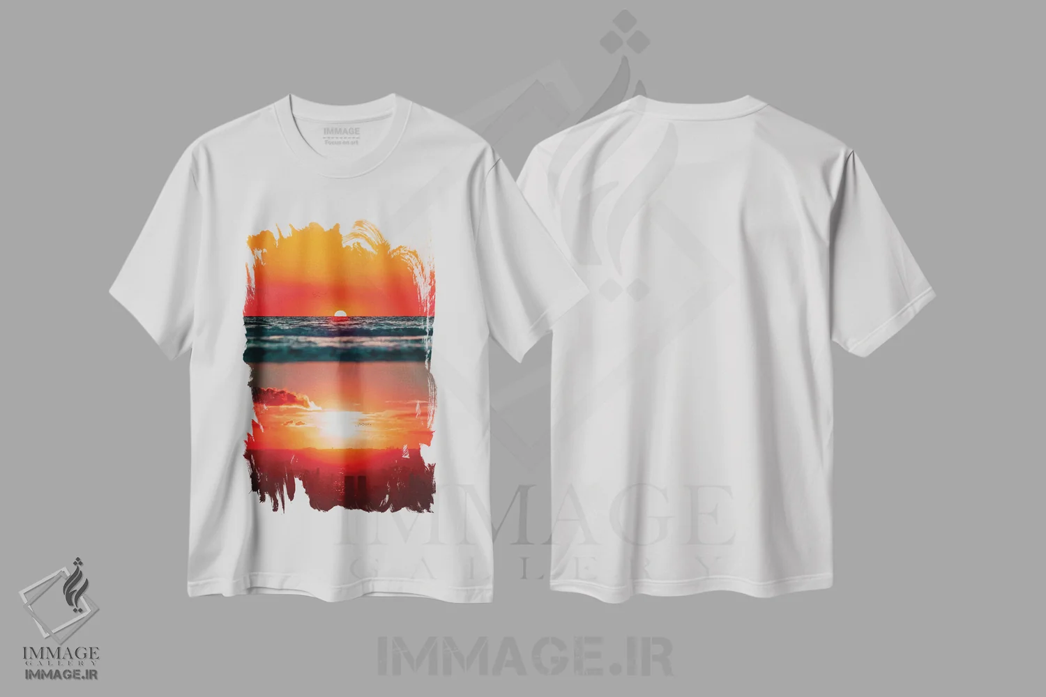 تیشرت طرح دار غروب خورشید بر اقیانوس و شهر اثر جن زد