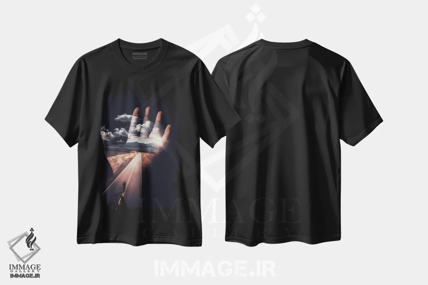 تیشرت مشکی طرح دار خطوط دست آینده ات را نشان می دهد، هنر دیجیتال اثر جن زد | فروشگاه ایماژ