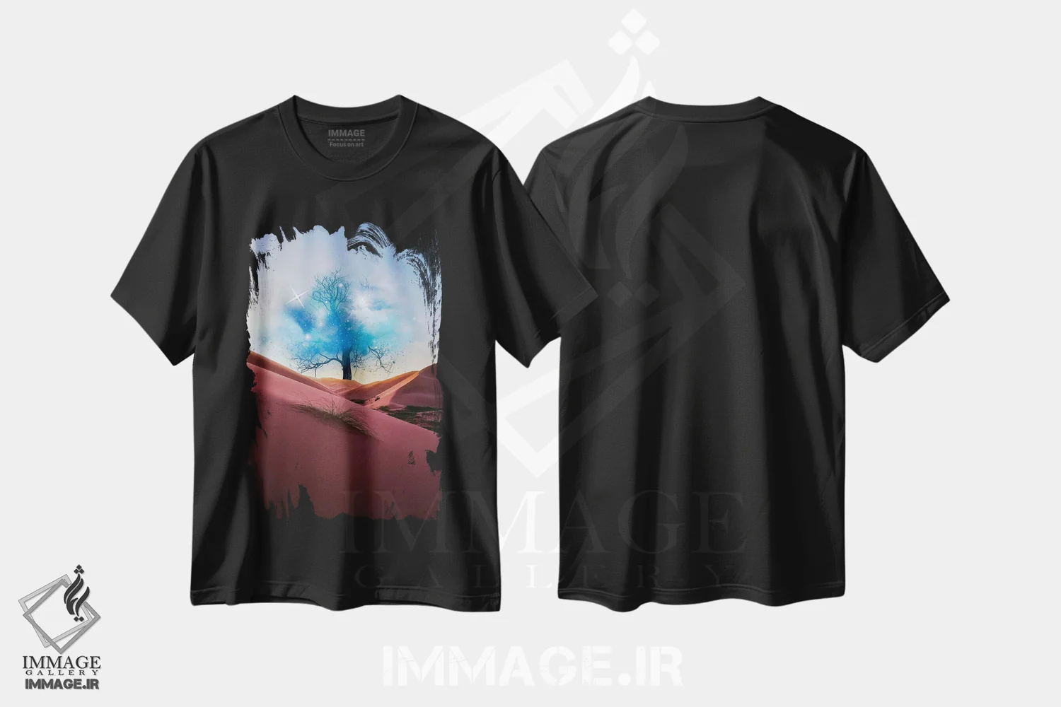 تی شرت «درخت با برگ های فضایی در بیابان»؛ پیوند زمین و کهکشان