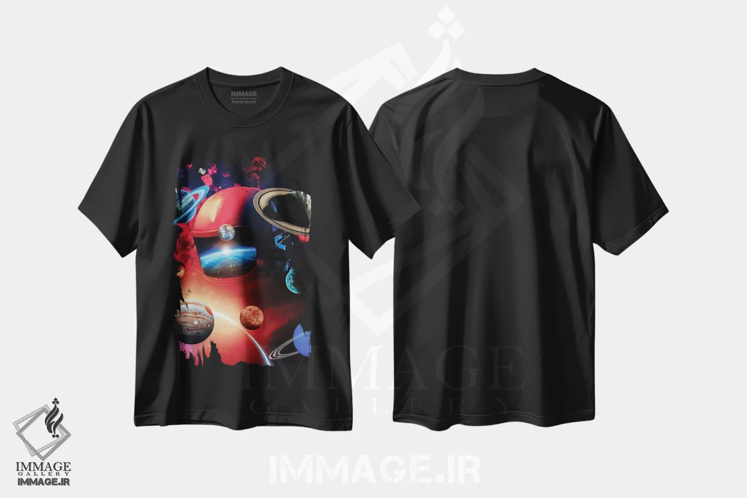تیشرت طرح دار فضانورد خداگونه و منظومه شمسی اثر جن زد