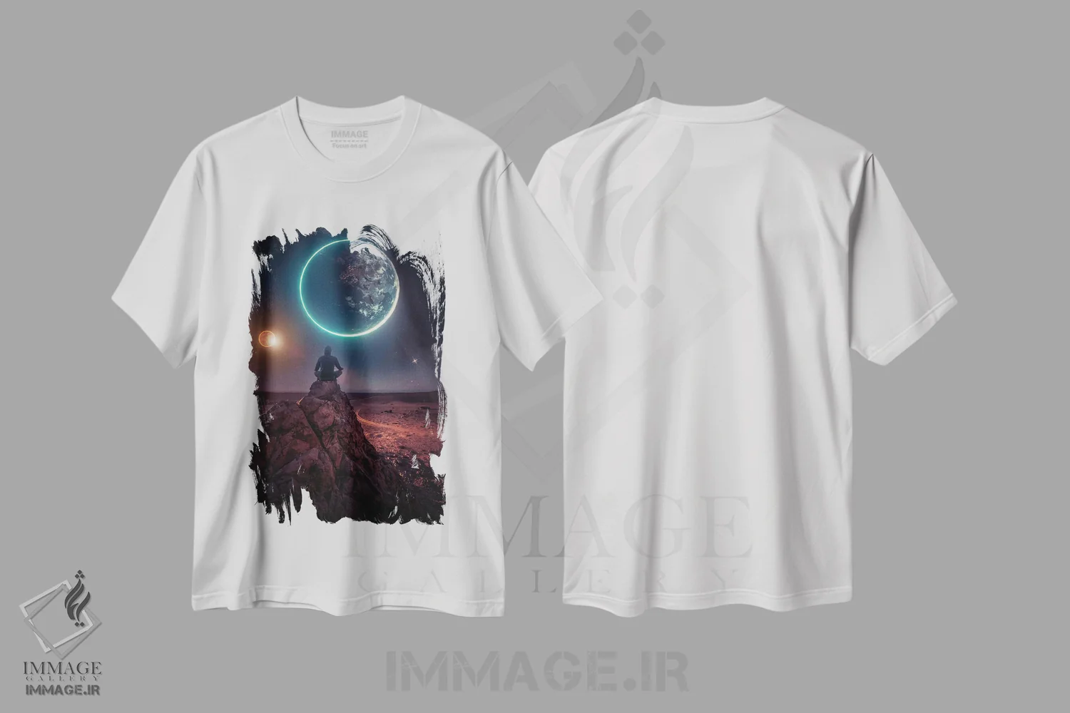 تیشرت سفید طرح دار مدیتیشن کائنات، تزئینی اثر جن زد | immage.ir