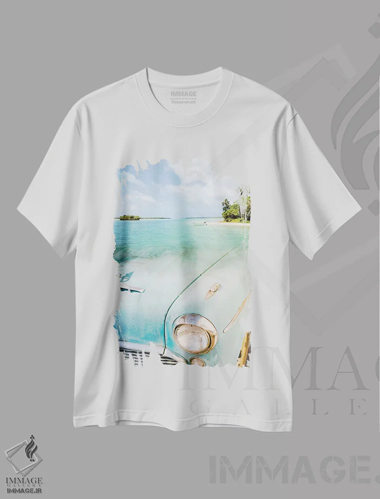 تی شرت «خودروی کلاسیک در ساحل کوبا»؛ حس ساحلی با رنگ های گرم