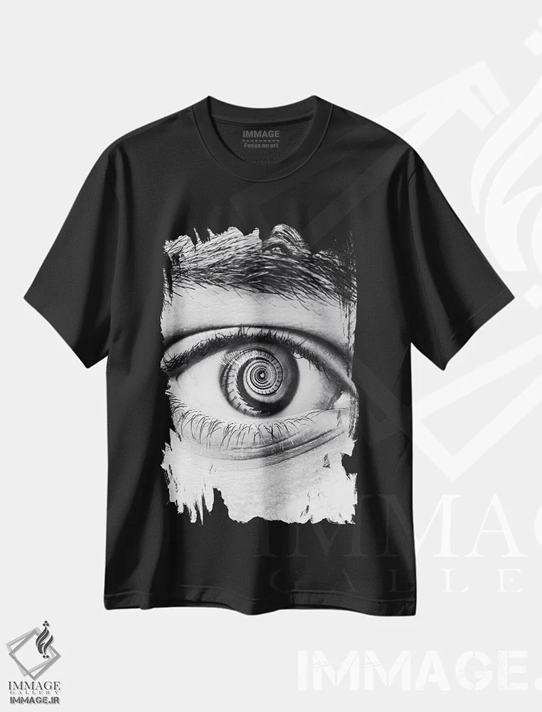تیشرت طرح دار چشم پلکان چرخان سیاه و سفید اثر جن زد