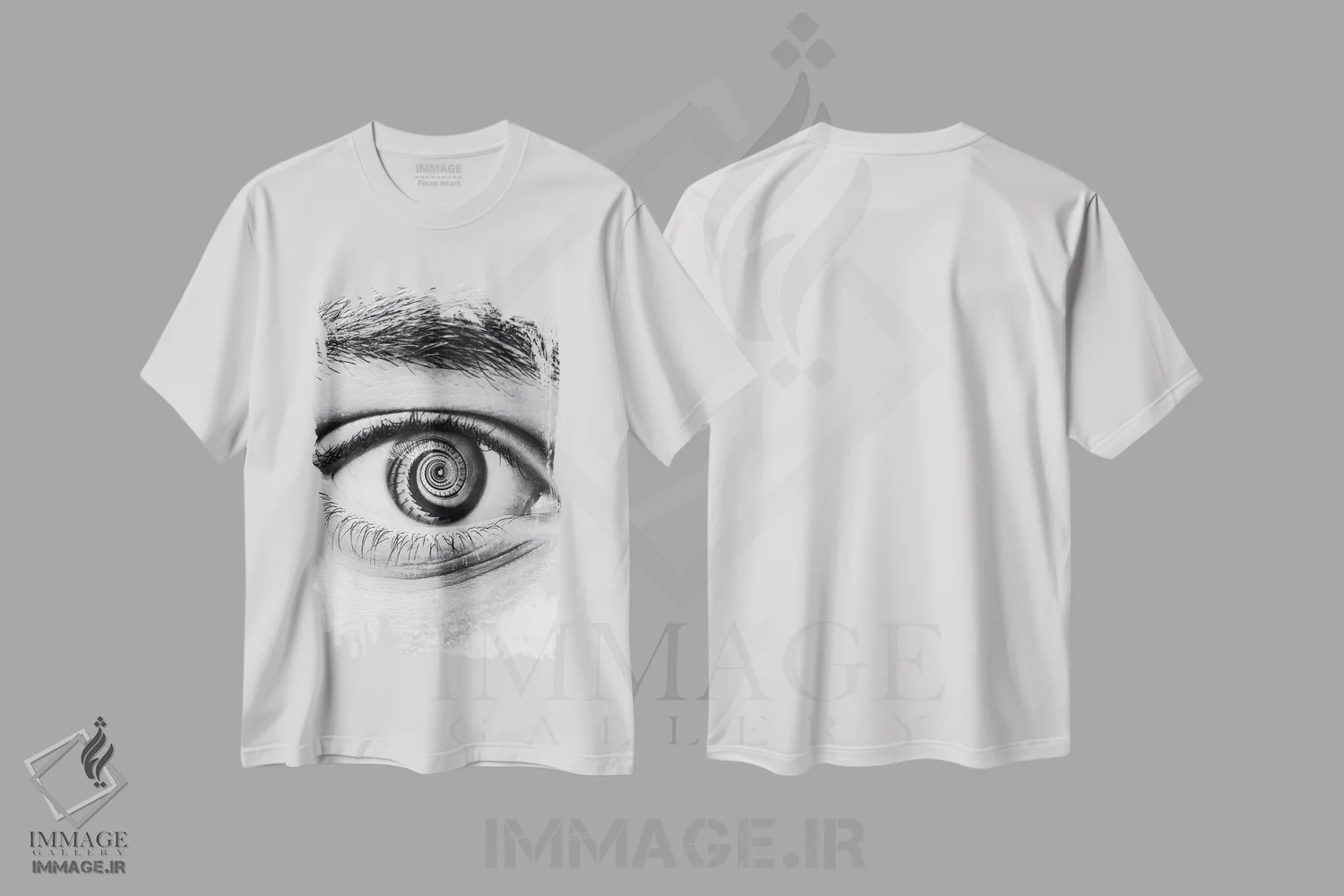 تیشرت سفید طرح دار چشم پلکان چرخان سیاه و سفید، هنر تزئینی سیاه و سفید اثر جن زد | فروشگاه ایماژ