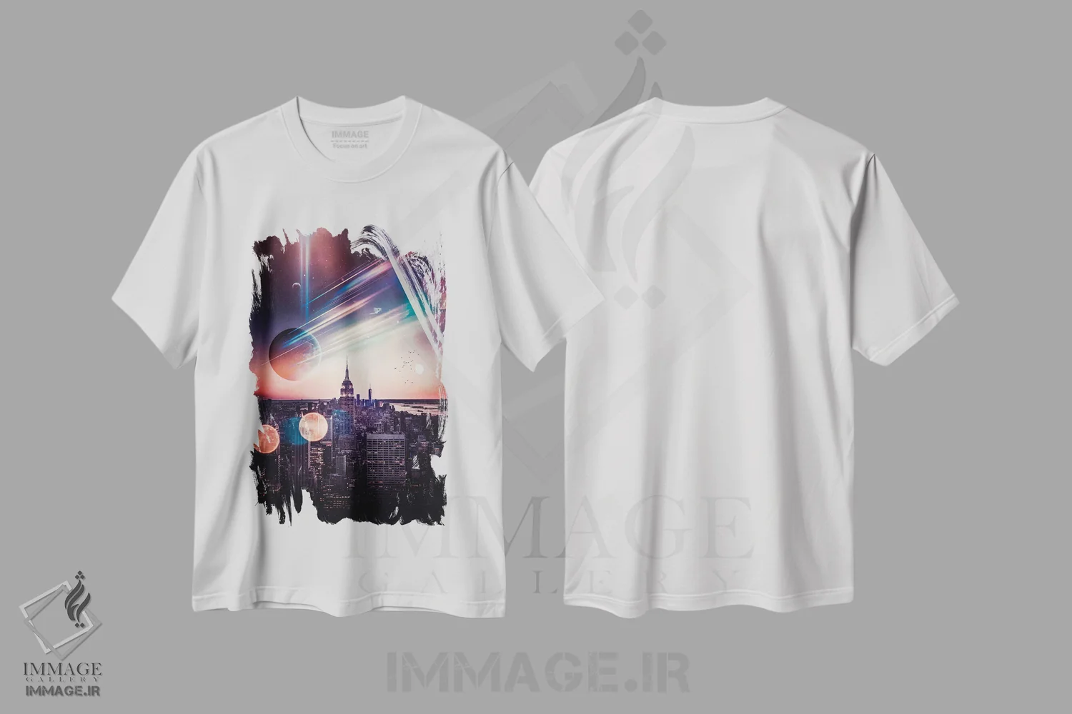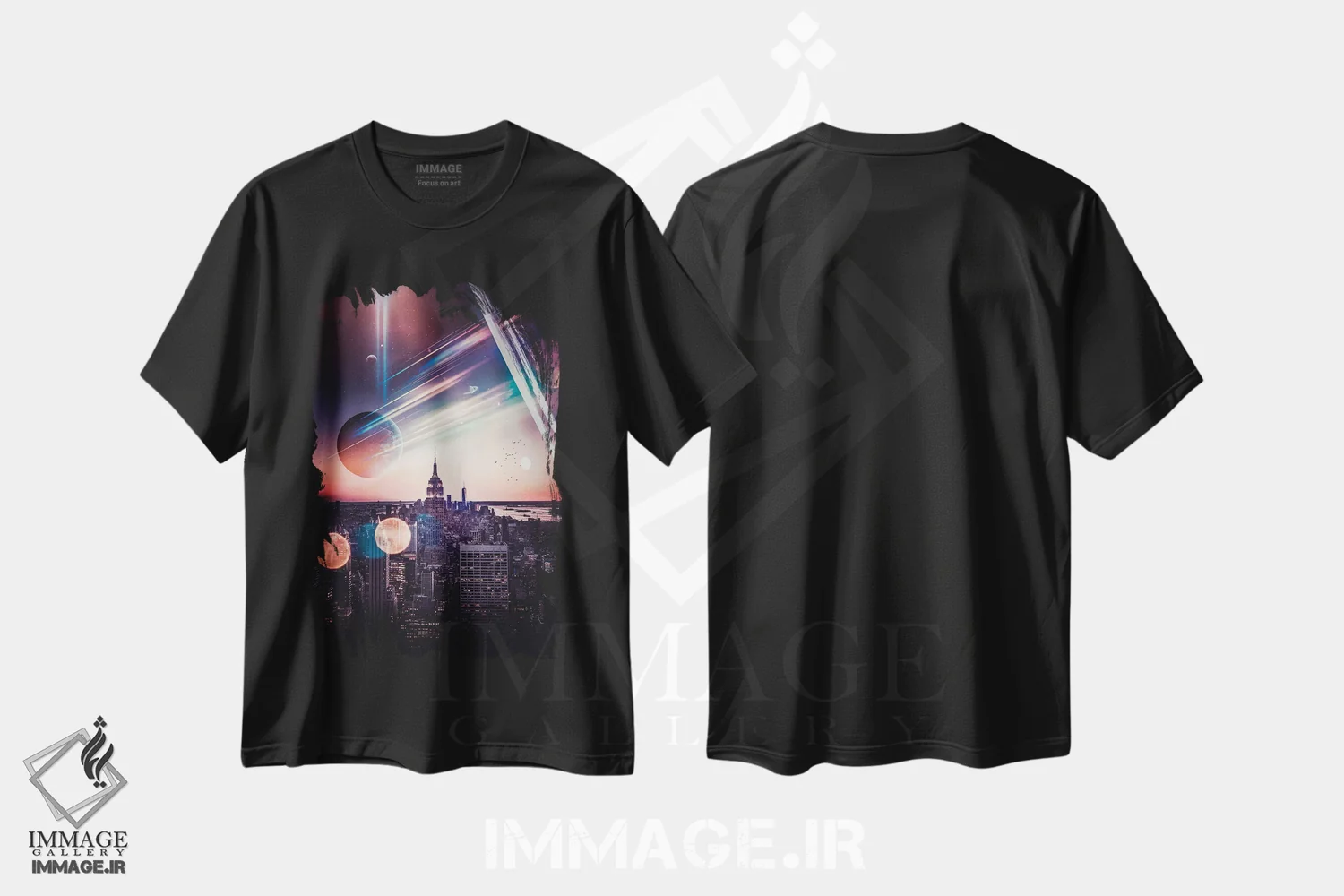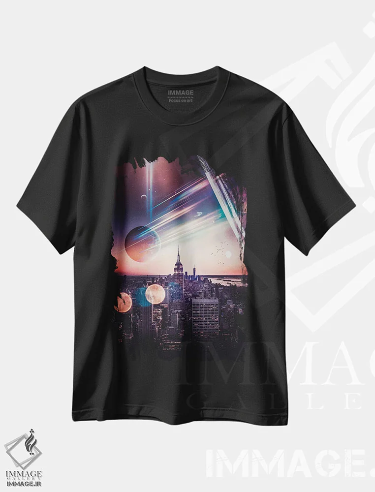 تیشرت طرح دار قله راک نیویورک و باله فضایی اثر جن زد