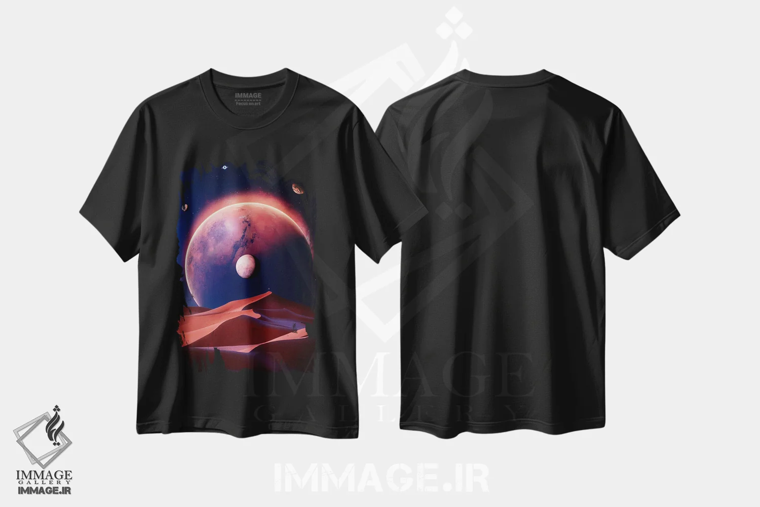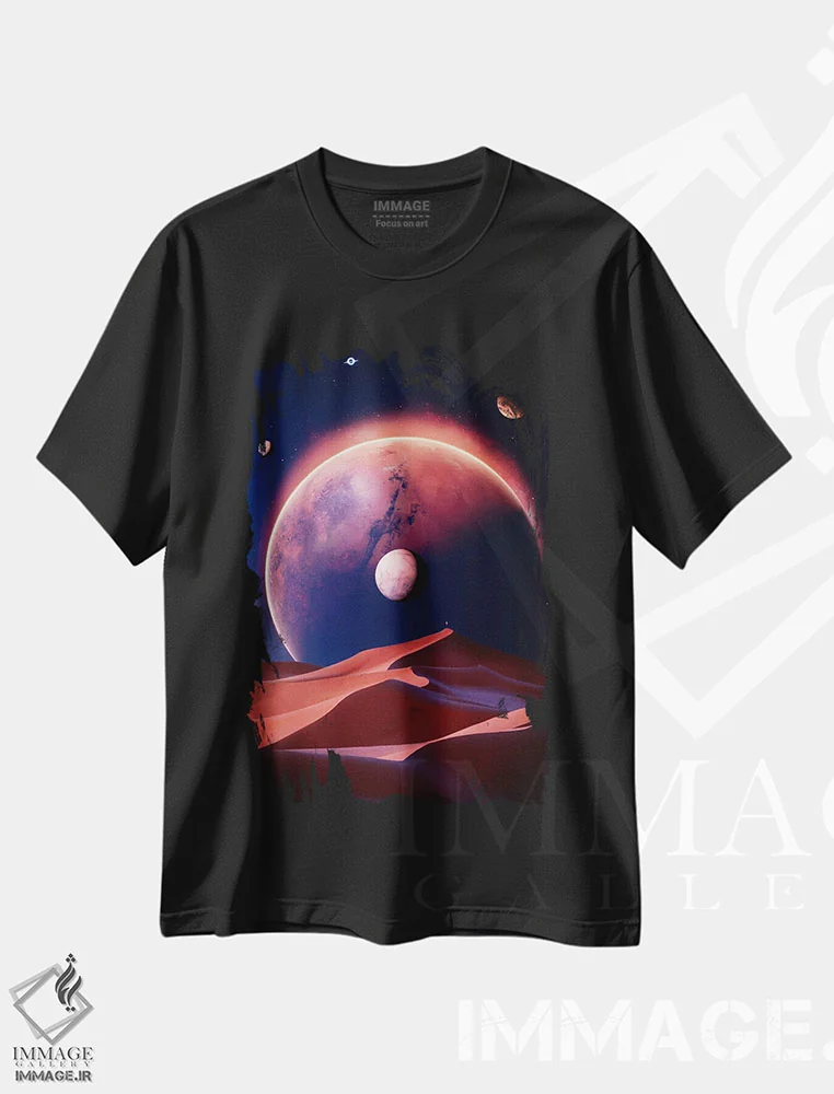 تیشرت مشکی طرح دار تپه های صحرایی مریخ در فضای آبی، عکاسی ترکیبی اثر جن زد | immage.ir