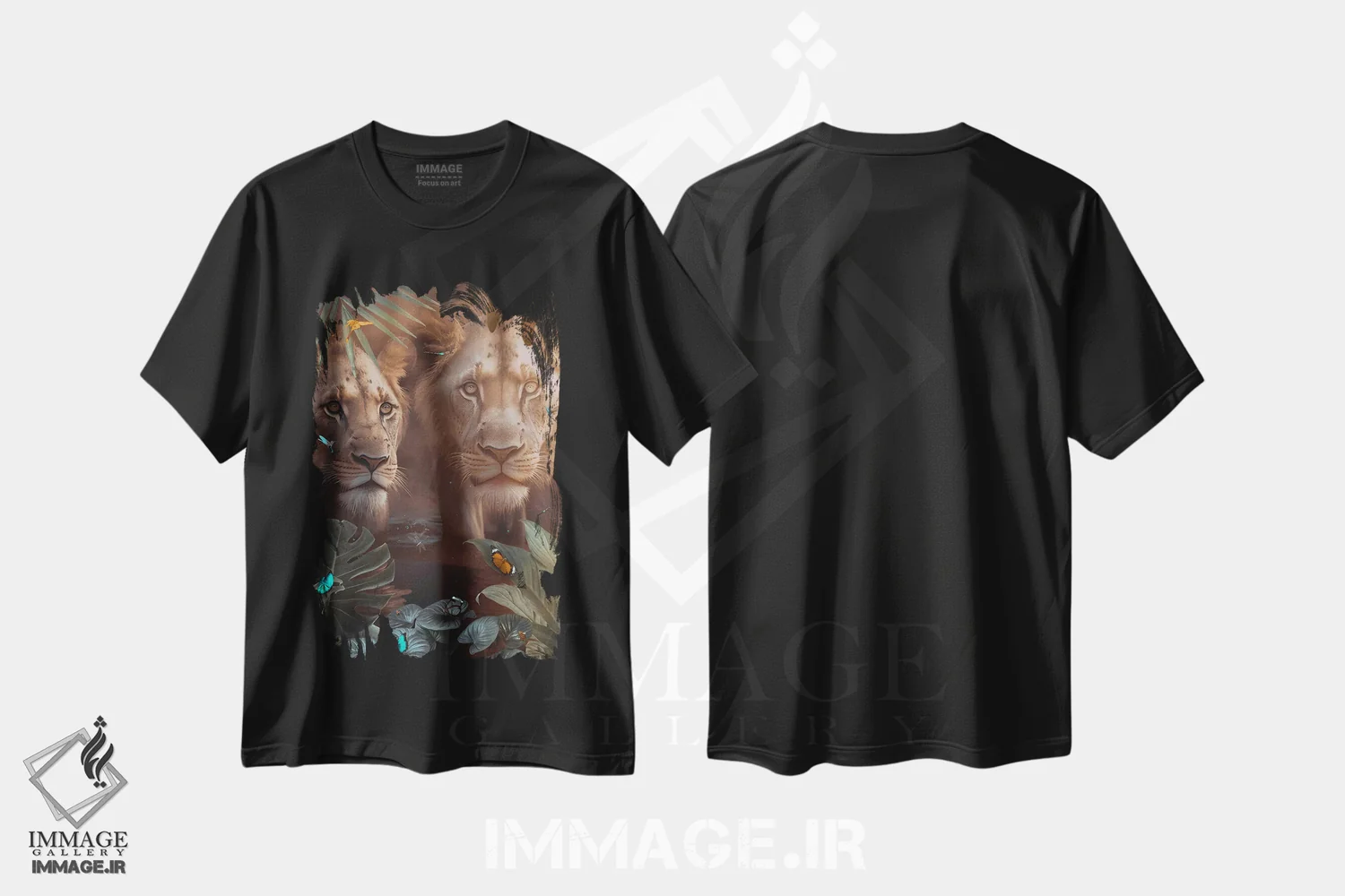 تیشرت طرح دار شیرهای عاشق با پروانه های شگفت انگیز اثر جن زد
