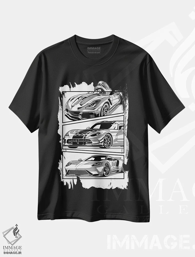 تیشرت مشکی طرح دار ماشین های کلاسیک ۲۹، هنر دیجیتال سیاه و سفید اثر گب فرناندو | immage.ir