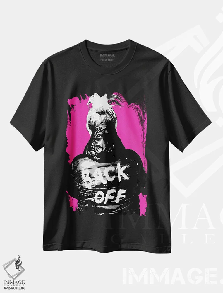 تی شرت زنانه «عقب بایست!»؛ شوخ طبعی پاپ با رنگ صورتی
