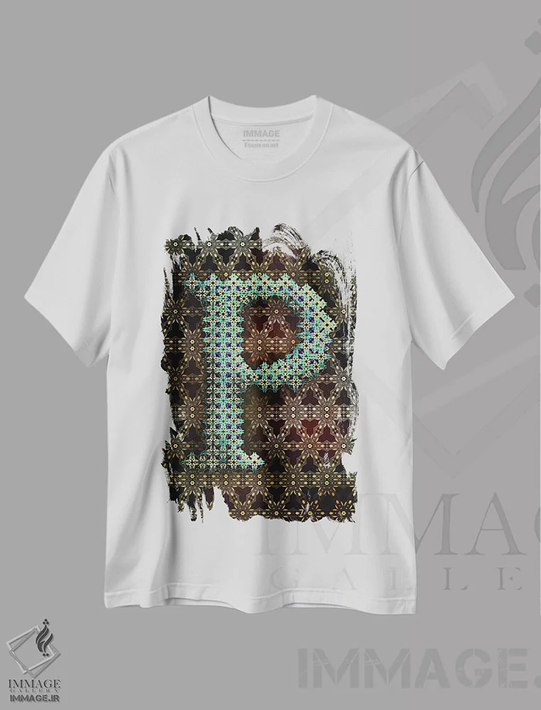 تی شرت طرح هنری «حرف P» با جزئیات تزئینی