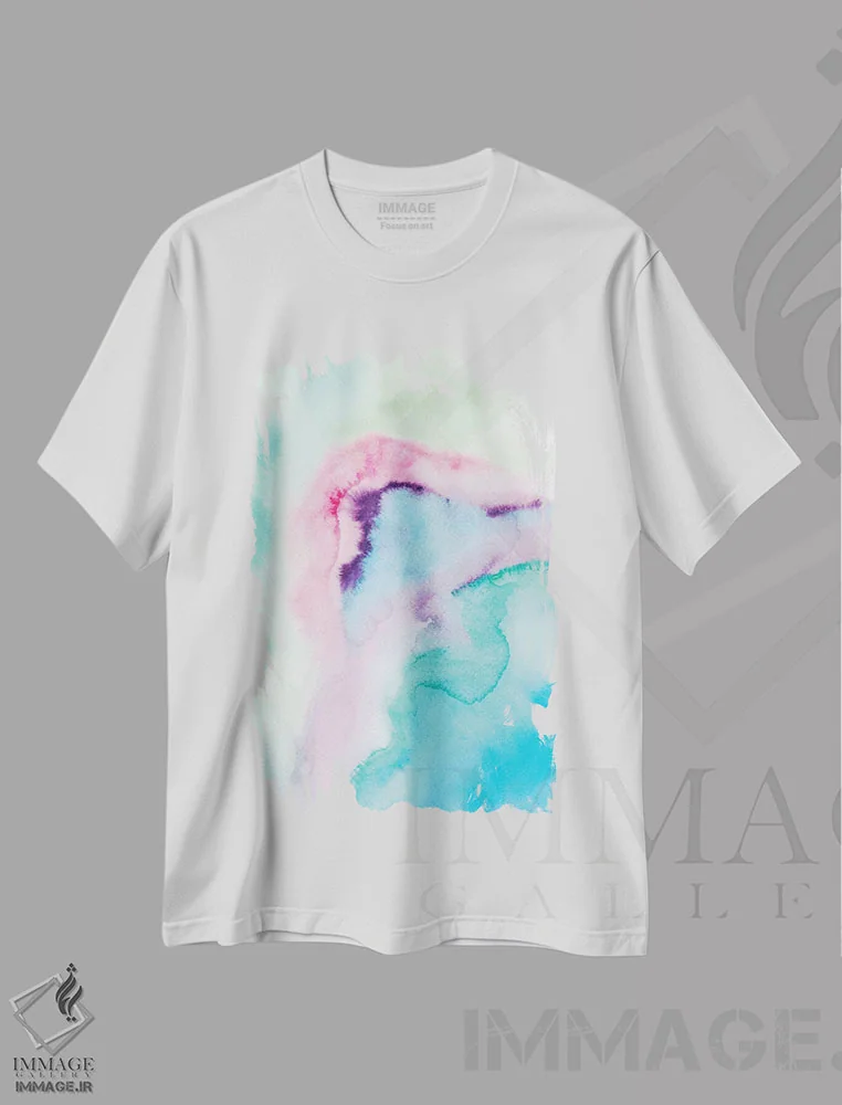 تی شرت «انتزاعی هفدهم»؛ هماهنگی فیروزه ای و صورتی در استایل هنری