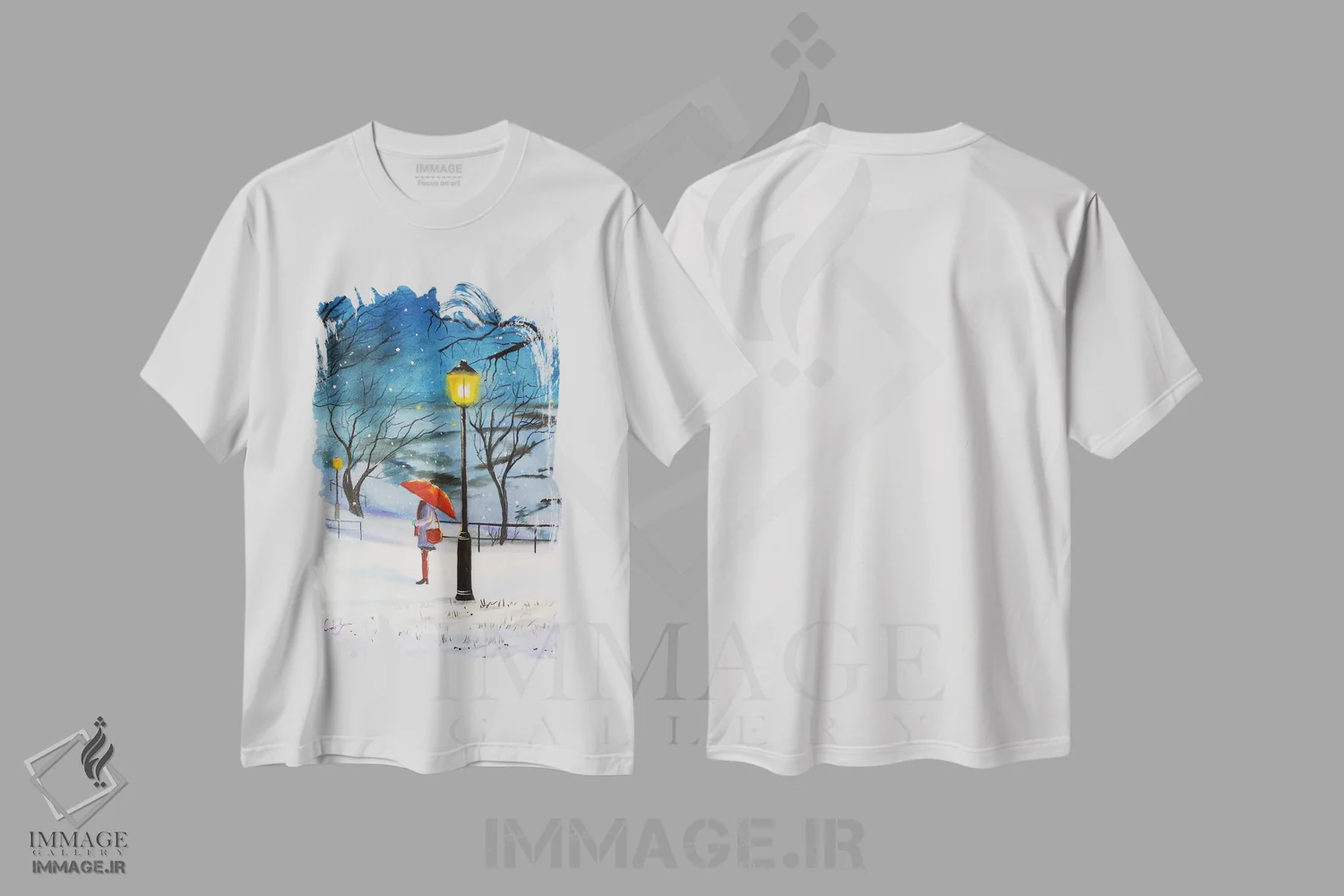 تیشرت سفید طرح دار یک چتر قرمز برای زمستان، دکور معاصر اثر گوردون بروس | فروشگاه ایماژ