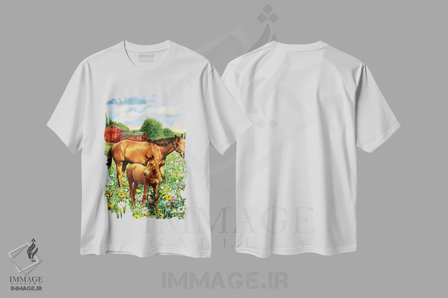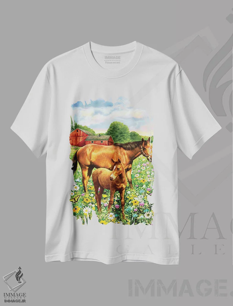 تی شرت «مادیان و کره اسب»؛ لطافت طبیعت و حس روستایی
