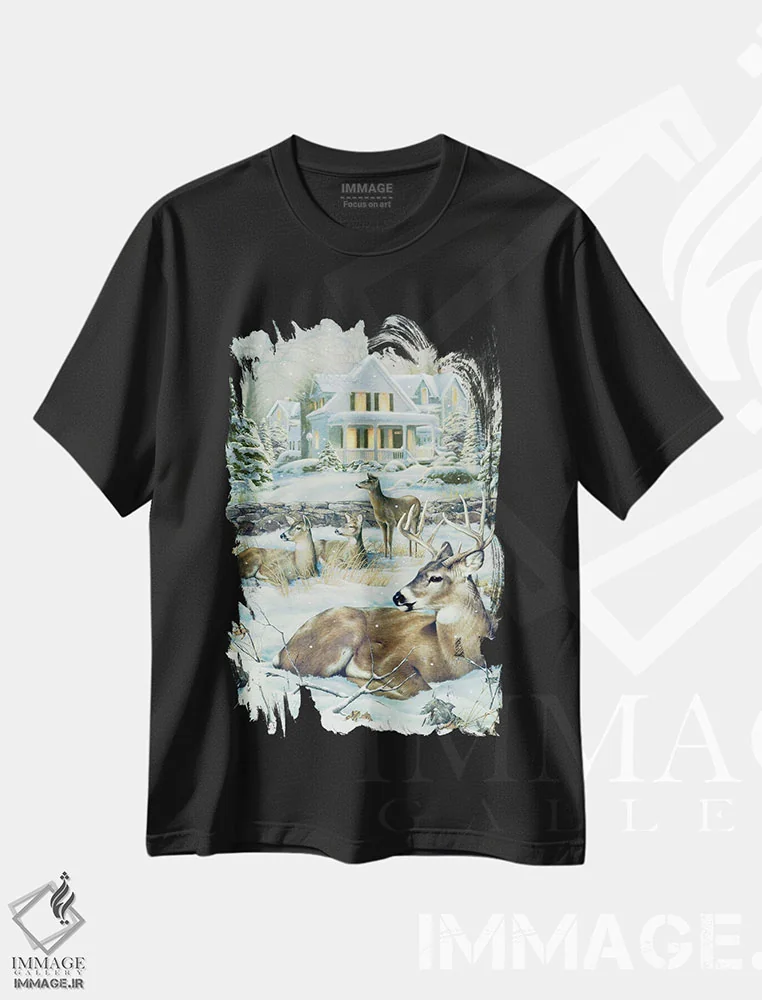 تی شرت «گوزن زمستانی»؛ آرامش حیات وحش در برف