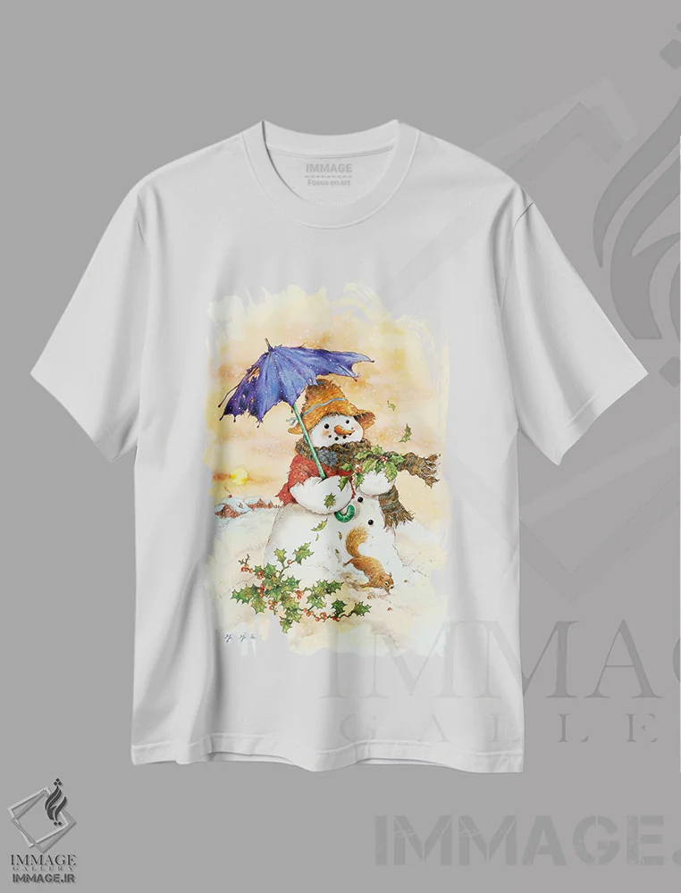 تی شرت «آدم برفی و چتر»؛ فضای بازیگوش زمستانی