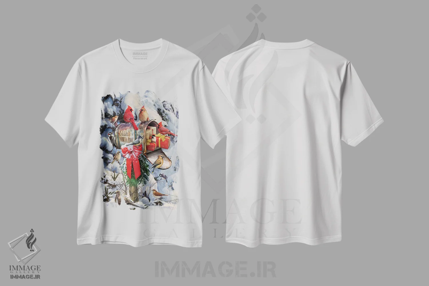 تیشرت طرح دار پرندگان کریسمس کنار صندوق پست اثر گرگ جوردانو