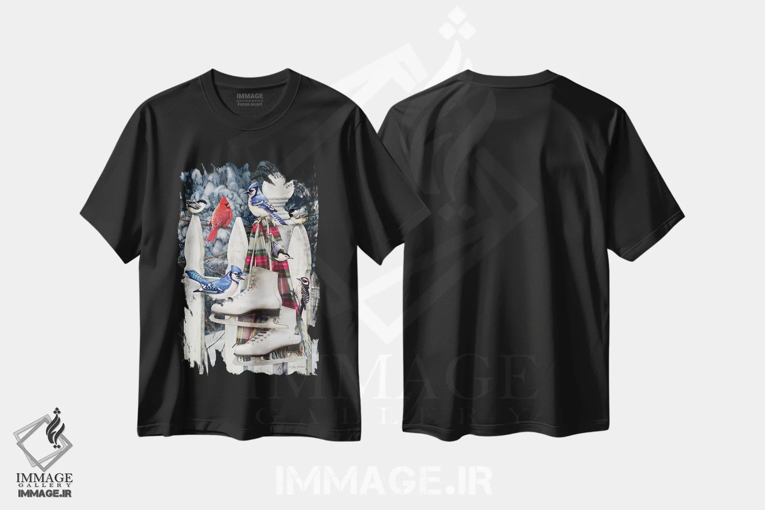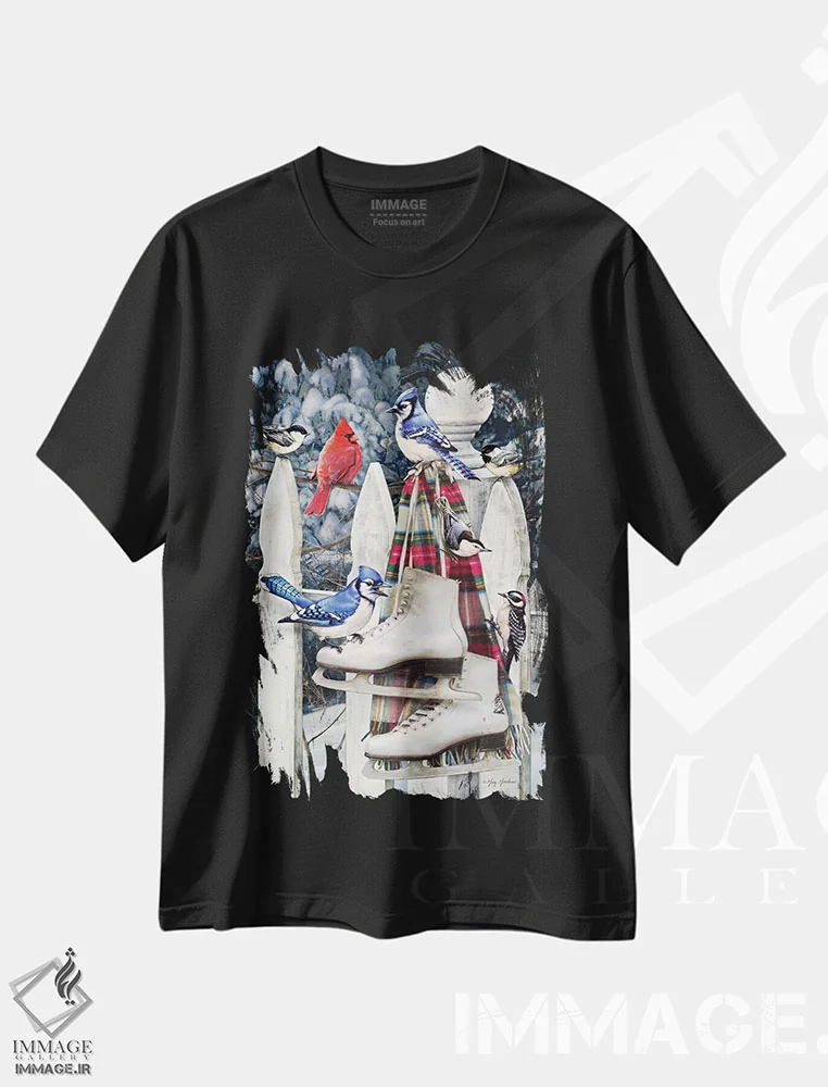 تی شرت طرح «پرندگان روی حصار»؛ حس زمستان با رنگ های گرم