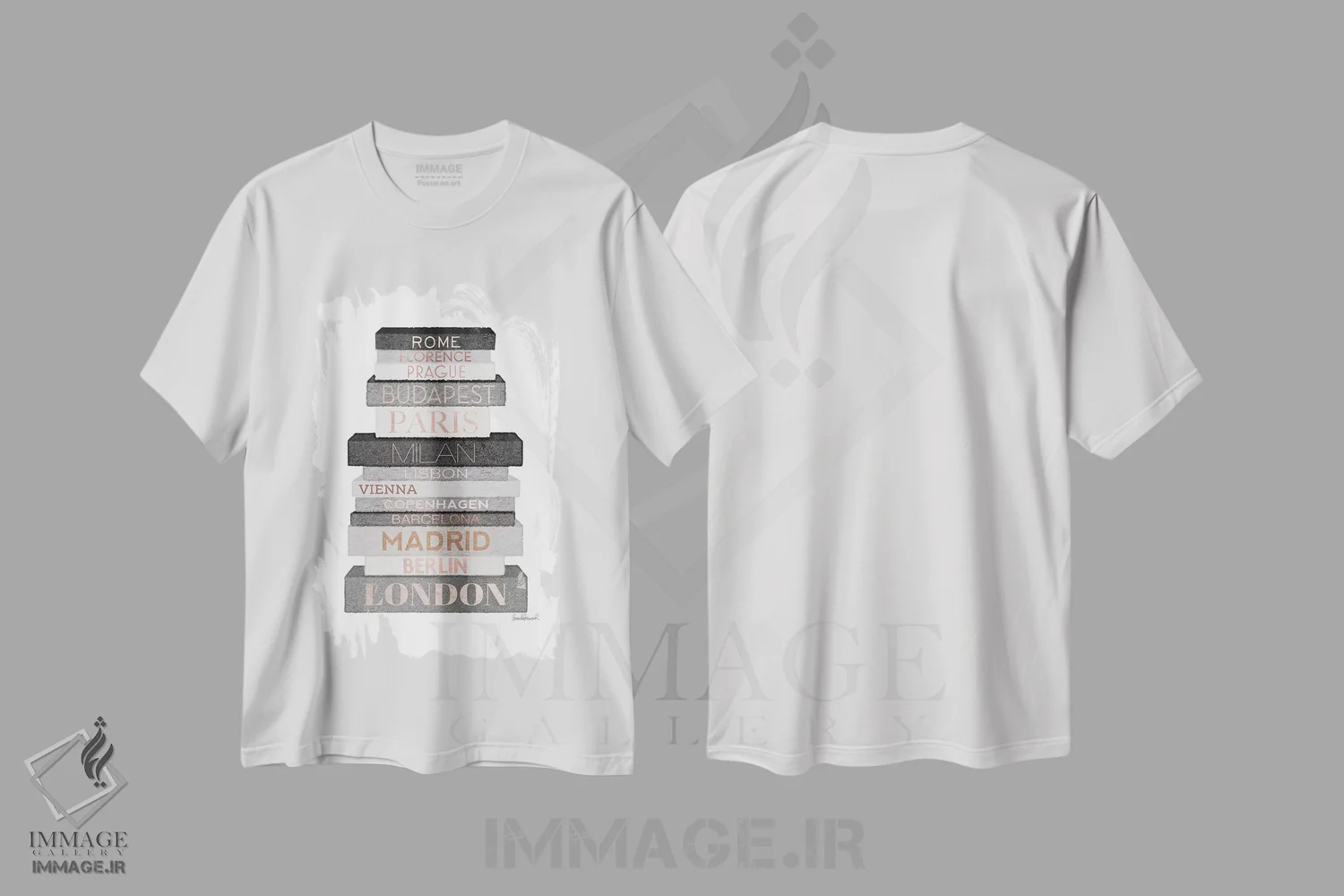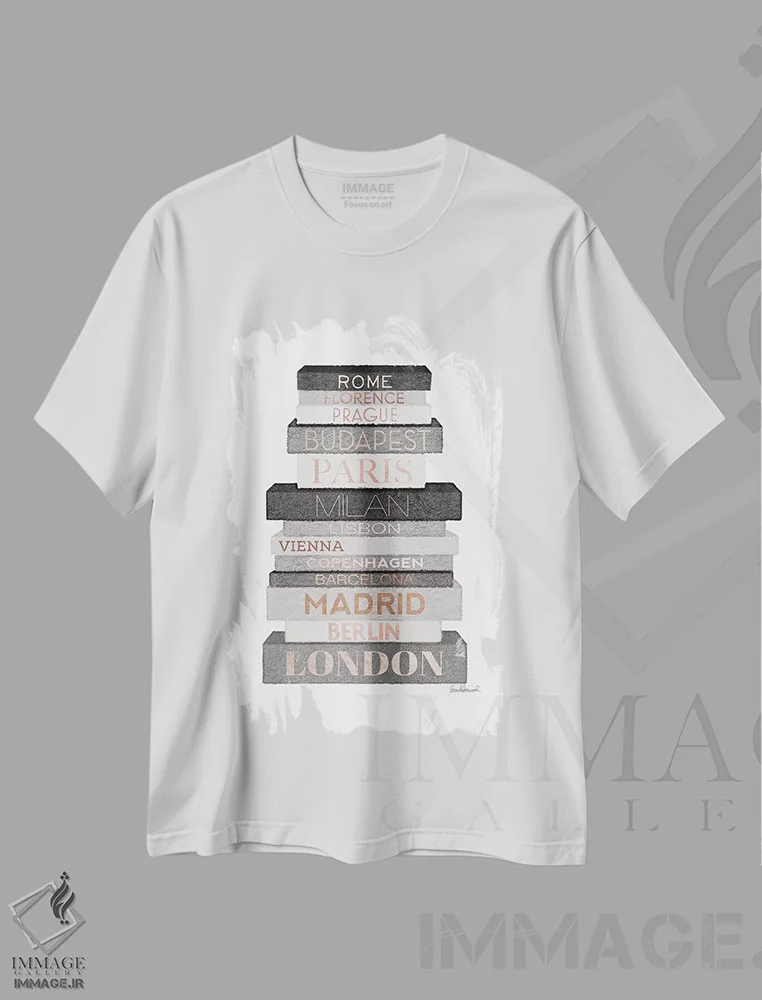 تیشرت طرح دار Grey & Rose Gold,کتاب های شهر اروپا، خاکستری و رزگلد اثر آماندا گرینوود
