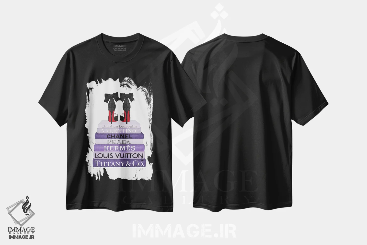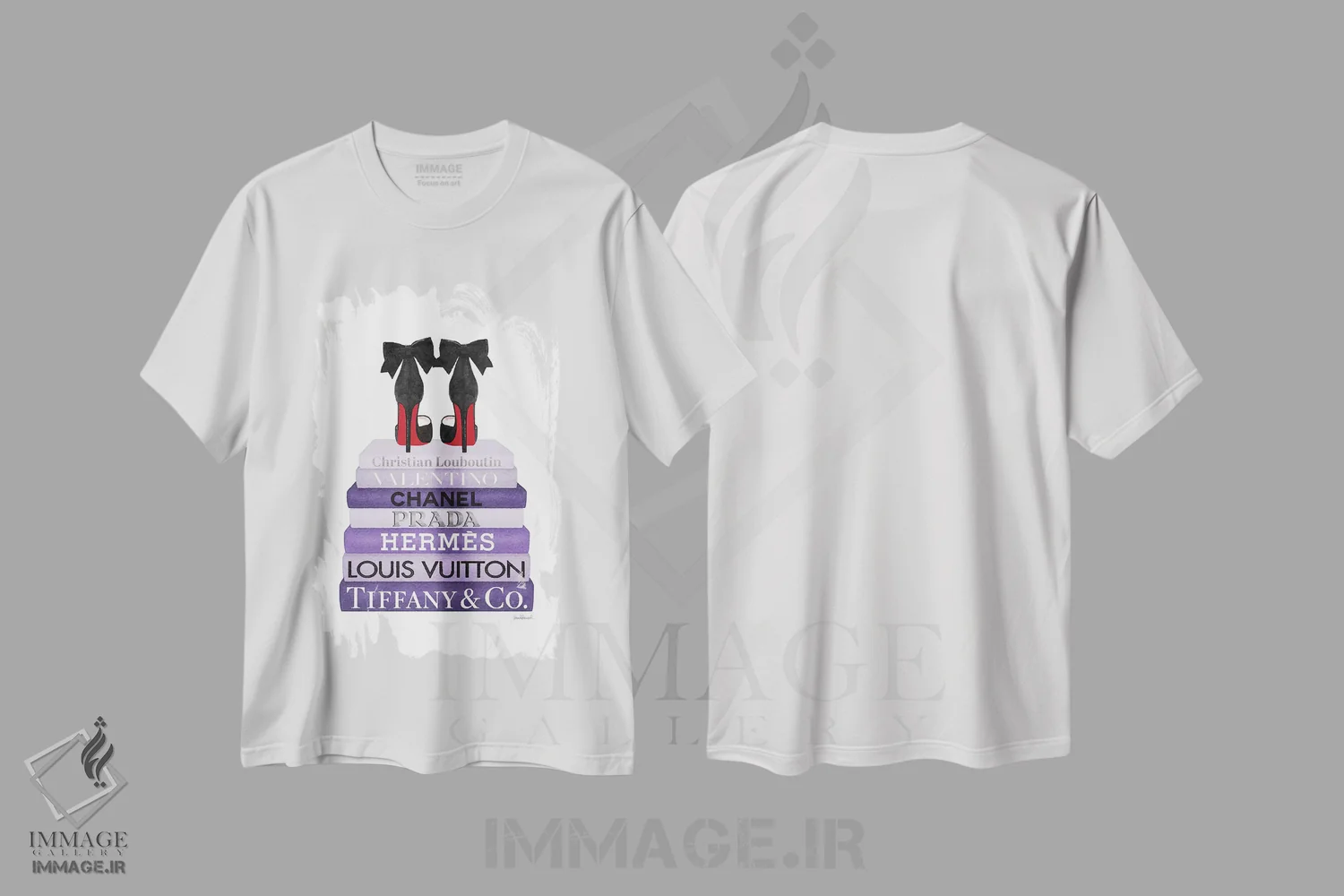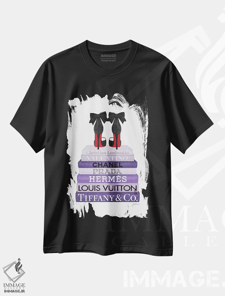 تی شرت «دسته کتاب بنفش با کفش پاشنه بلند»؛ جلوه ای مدرن برای استایل زنانه-شهری