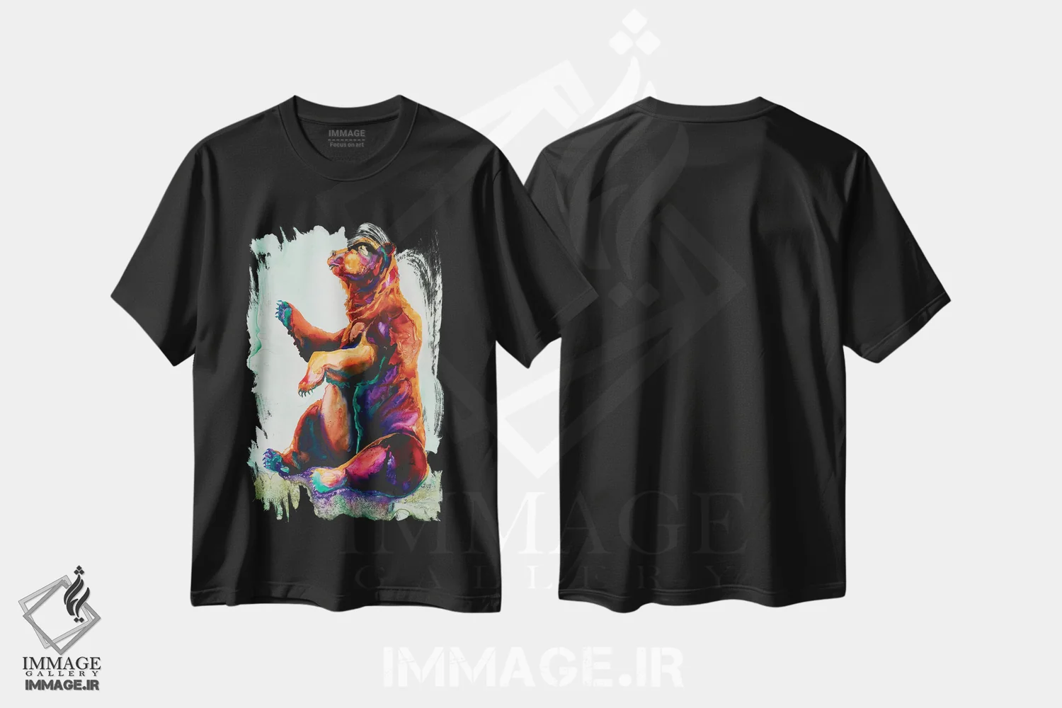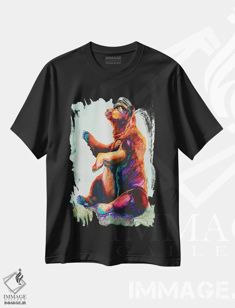 تیشرت مشکی طرح دار خرس توت فرنگی، دکور کلبه و لژ اثر کالی گاریس | immage.ir
