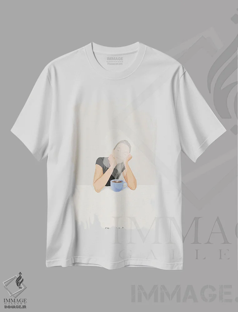 تیشرت سفید طرح دار قهوهٔ صبحگاهی، تزئینی اثر گیسل دکل | immage.ir