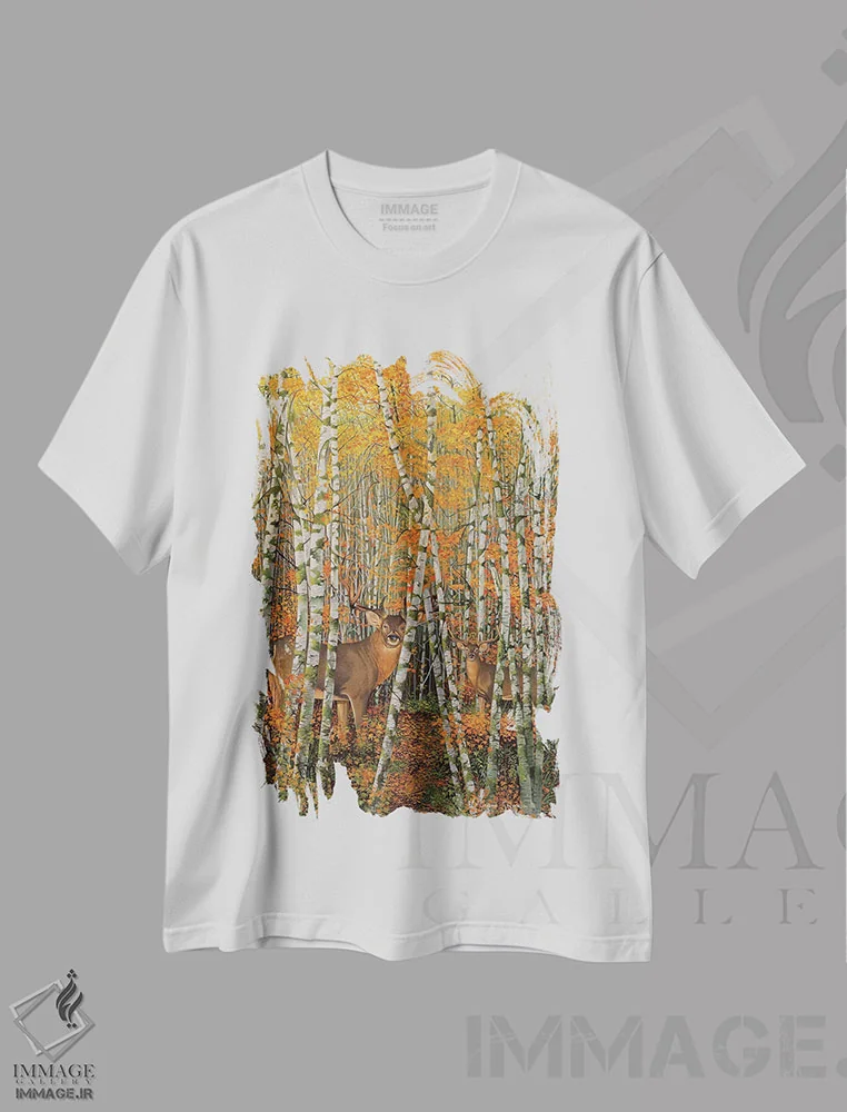 تیشرت طرح دار گوزن های پاییزی اثر گرائیم استیونسون