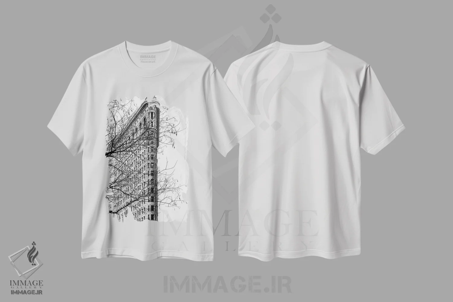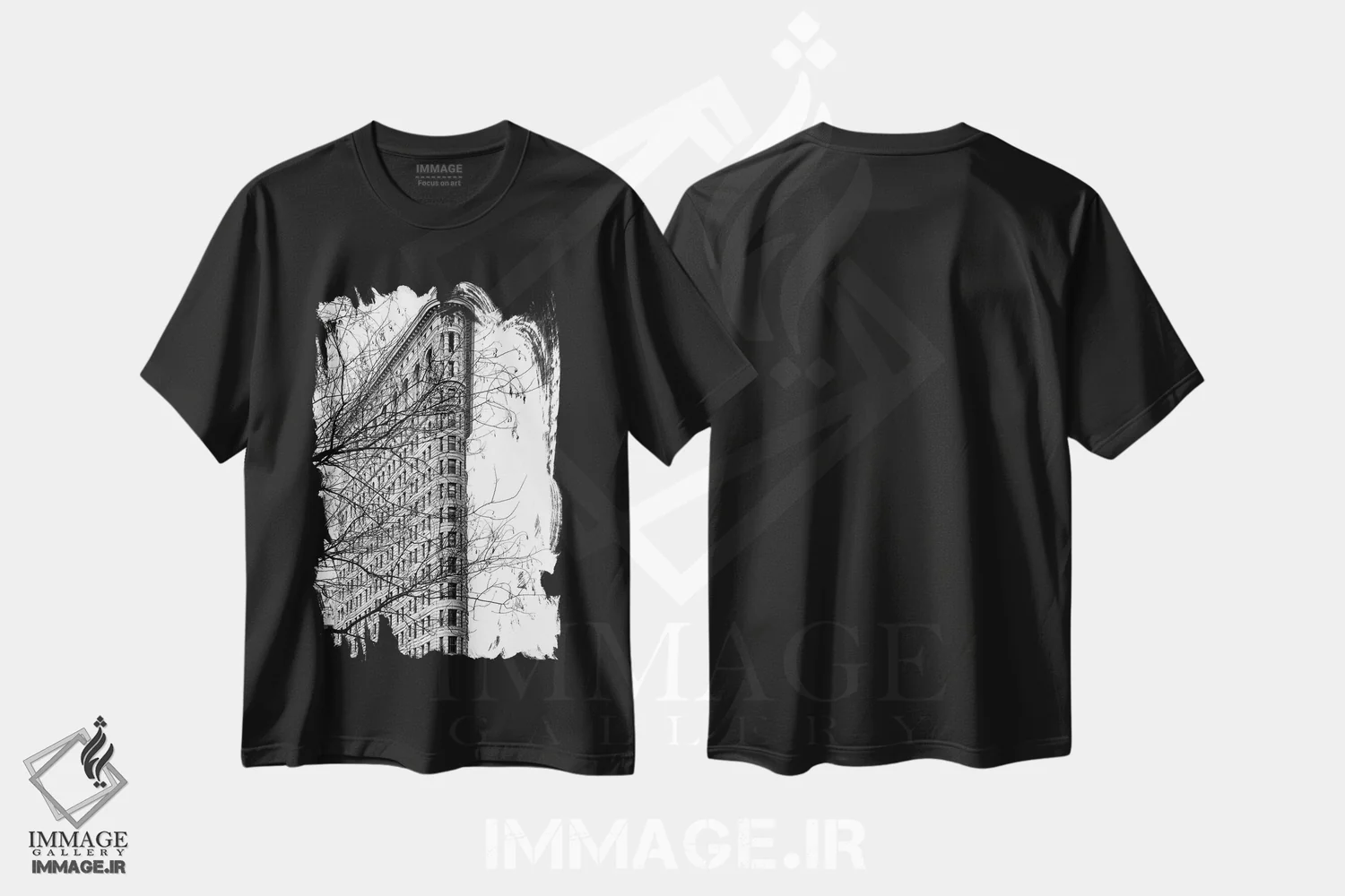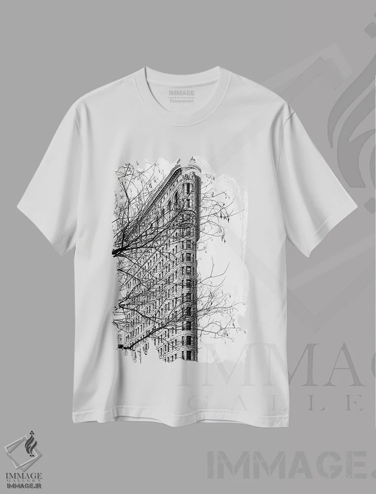 تی شرت هنری «ساختمان فلت آیرون» و استایل شهری سیاه وسفید