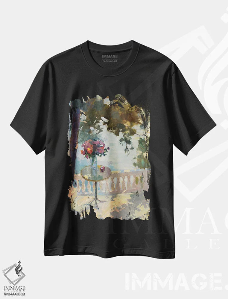 تیشرت مشکی طرح دار درخشش ها، هنر فاخر معاصر اثر کنتس آرت | immage.ir