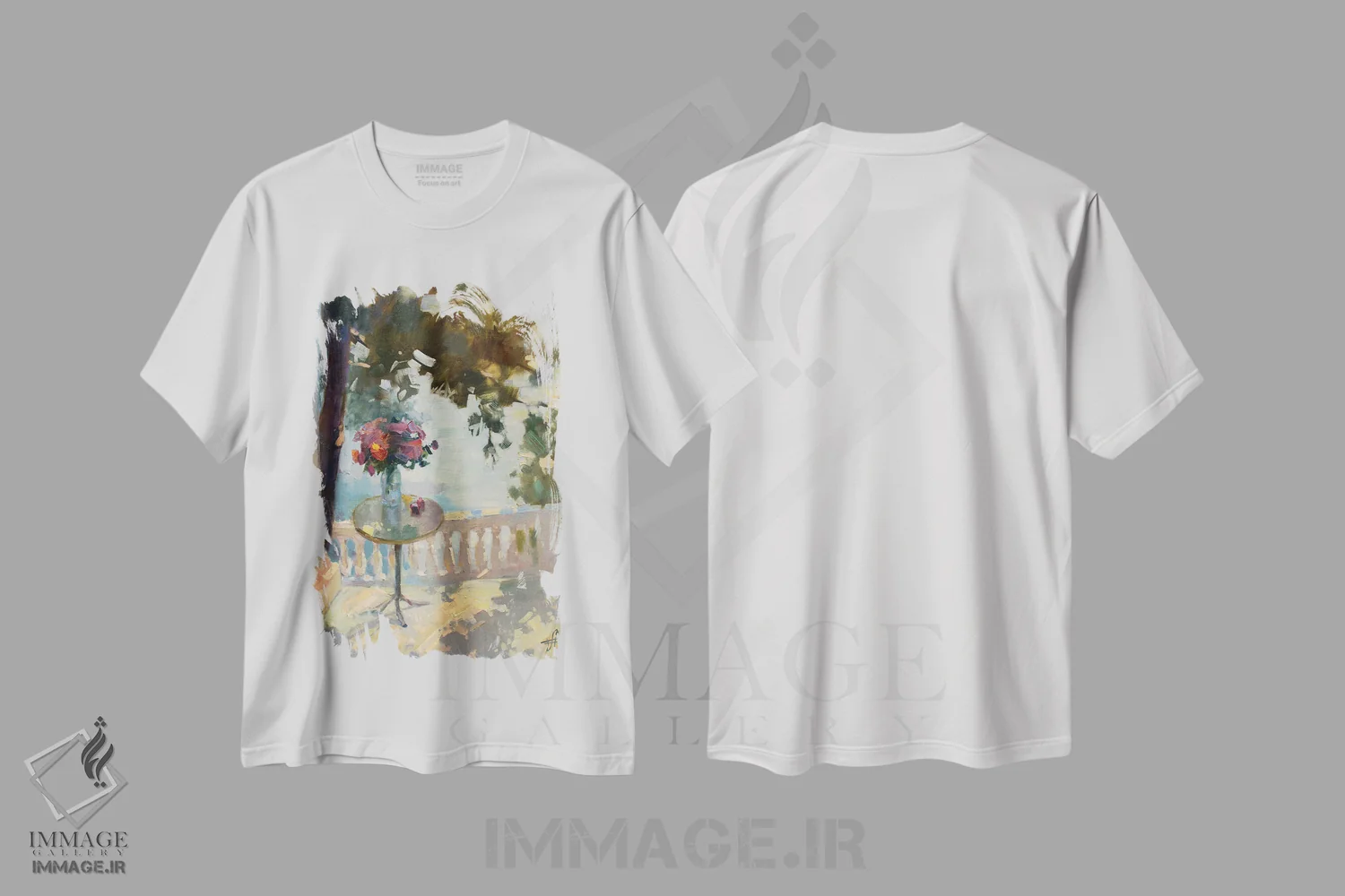 تیشرت سفید طرح دار درخشش ها، هنر فاخر معاصر اثر کنتس آرت | فروشگاه ایماژ