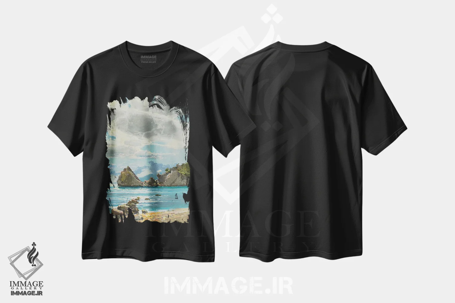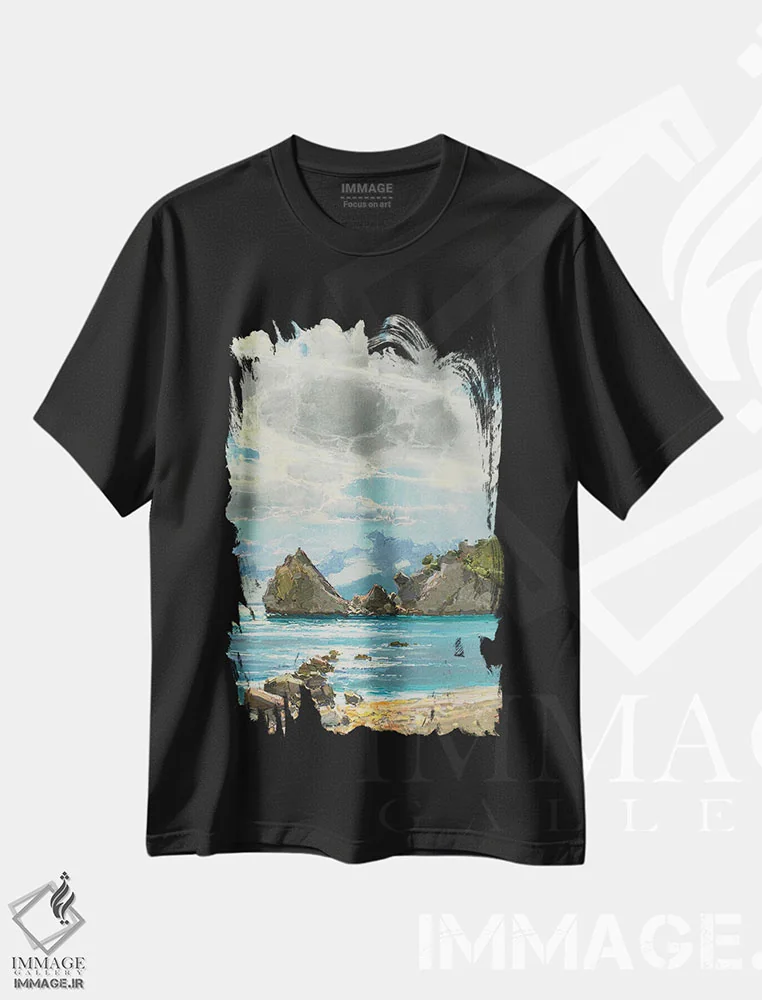 تیشرت مشکی طرح دار صخره دیوا، هنر فاخر معاصر اثر کنتس آرت | immage.ir