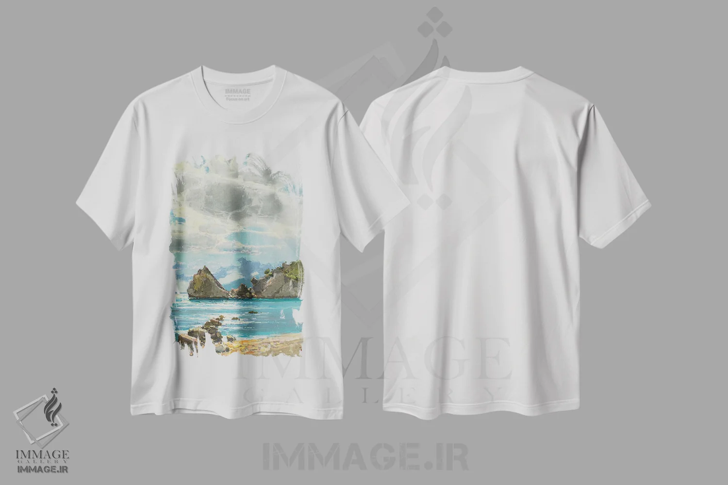 تیشرت سفید طرح دار صخره دیوا، هنر فاخر معاصر اثر کنتس آرت | فروشگاه ایماژ