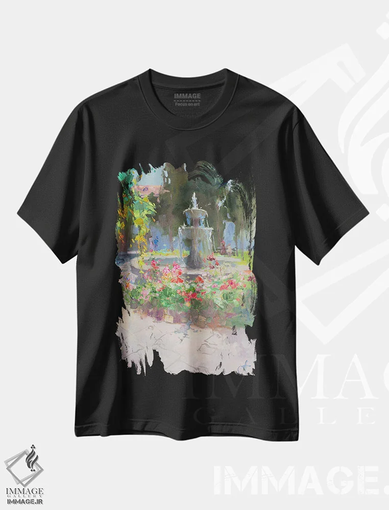 تیشرت مشکی طرح دار فواره ایتالیایی، هنر فاخر معاصر اثر کنتس آرت | immage.ir