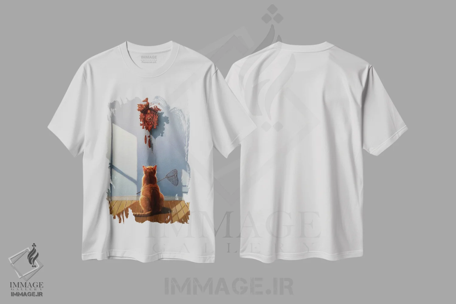 تیشرت سفید طرح دار ناهار به موقع، هنر فاخر معاصر اثر لوسیا هفرنان | فروشگاه ایماژ