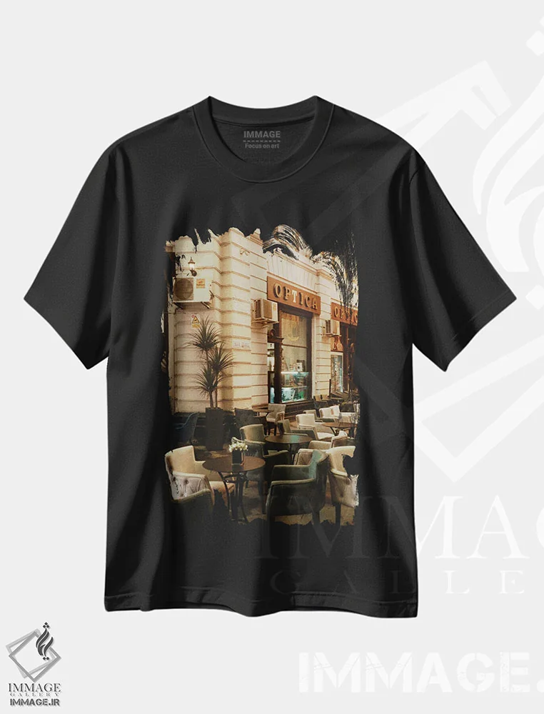 تی شرت هنری «کافه آنالوگ» با ترکیب معماری و رنگ گرم