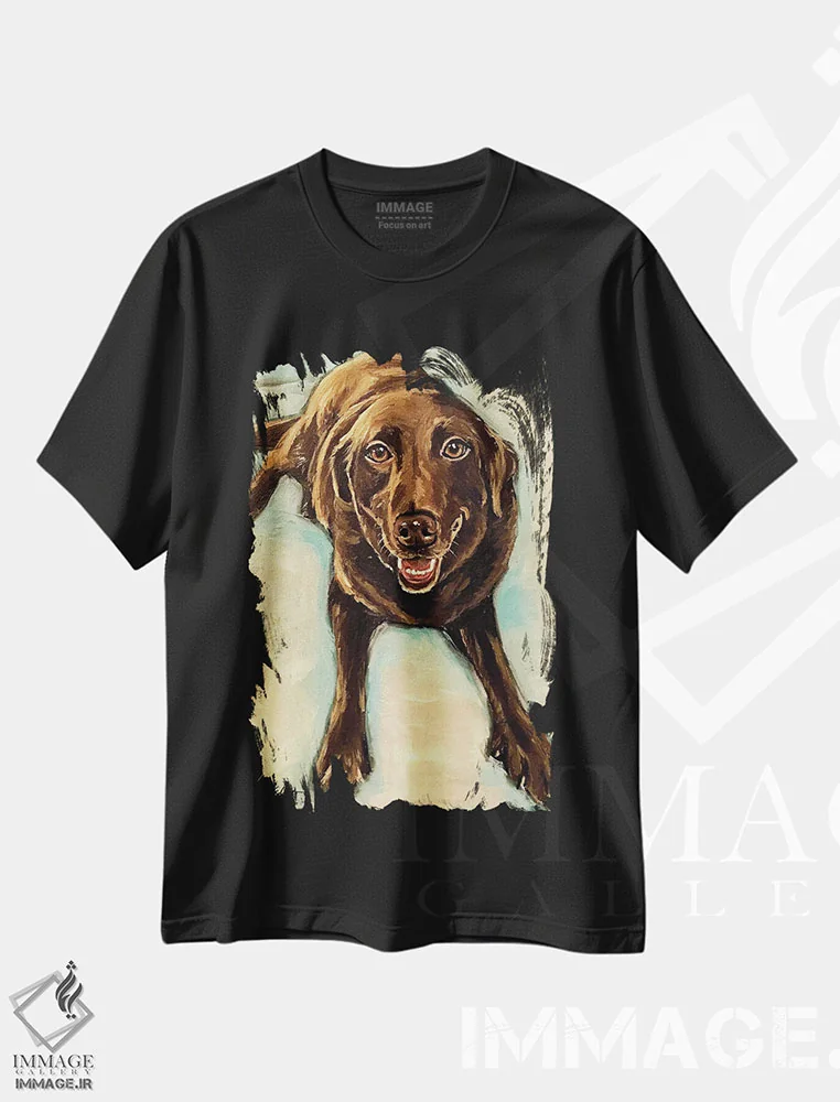 تیشرت مشکی طرح دار لابرادور شکلاتی، مدیوم اثر هیپی هاوند استودیوز | immage.ir