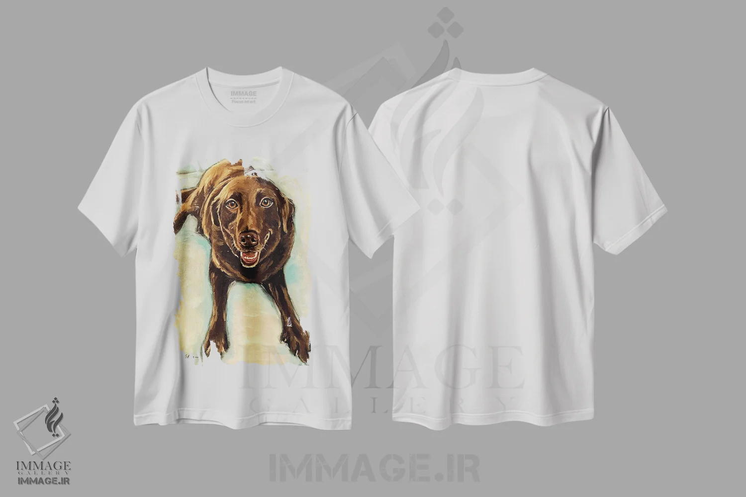 تیشرت سفید طرح دار لابرادور شکلاتی، مدیوم اثر هیپی هاوند استودیوز | فروشگاه ایماژ