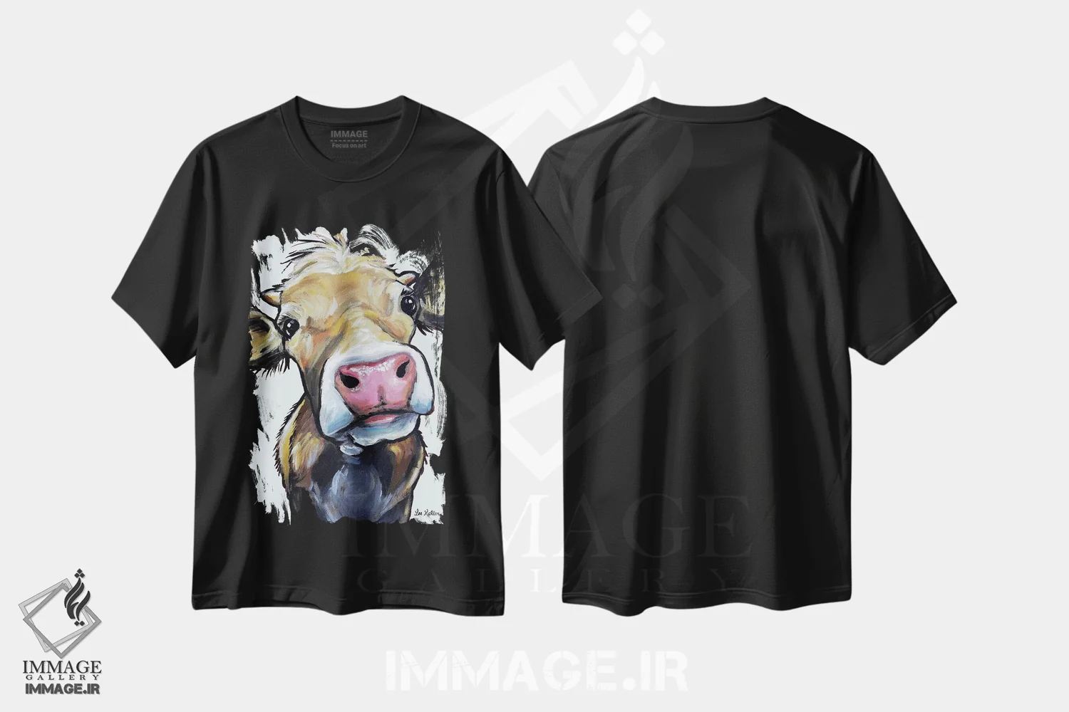 تیشرت مشکی طرح دار گاو هیزل روی زمینه خاکستری، مدیوم اثر هیپی هاوند استودیوز | فروشگاه ایماژ