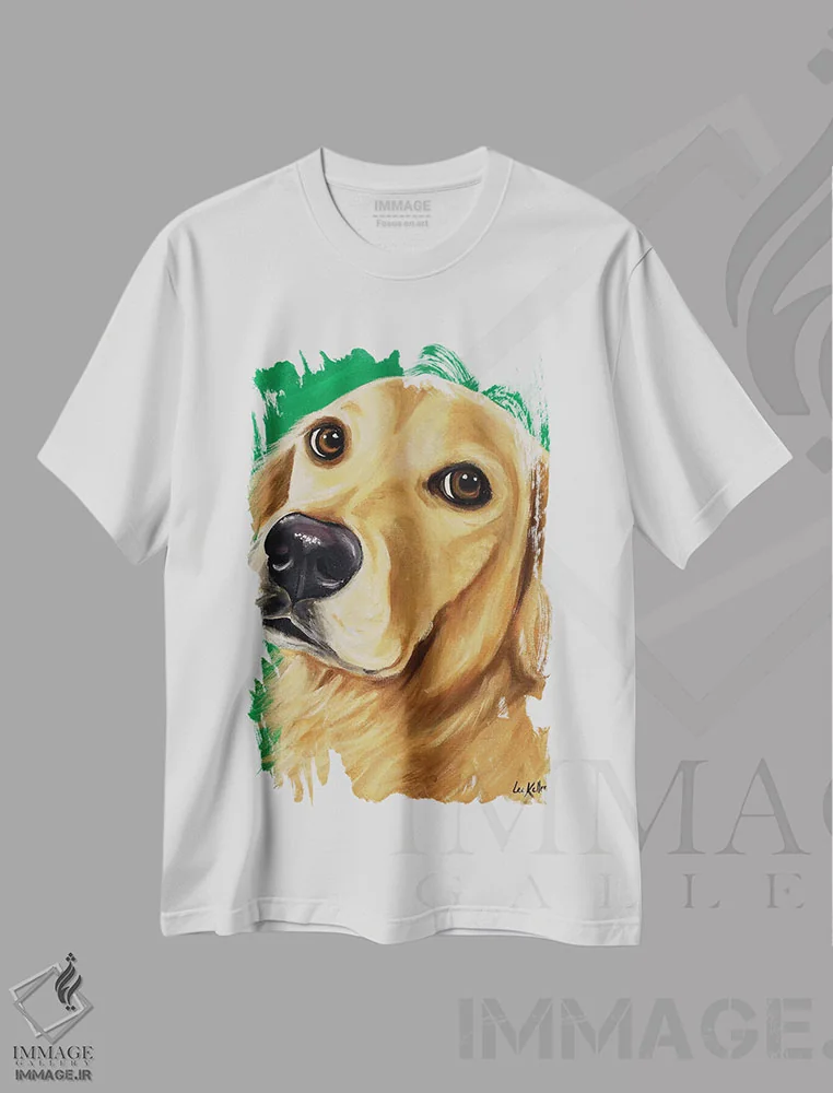رایدر گلدن رتریور روی سبز؛ تی شرت کلاسیک با روح طبیعت