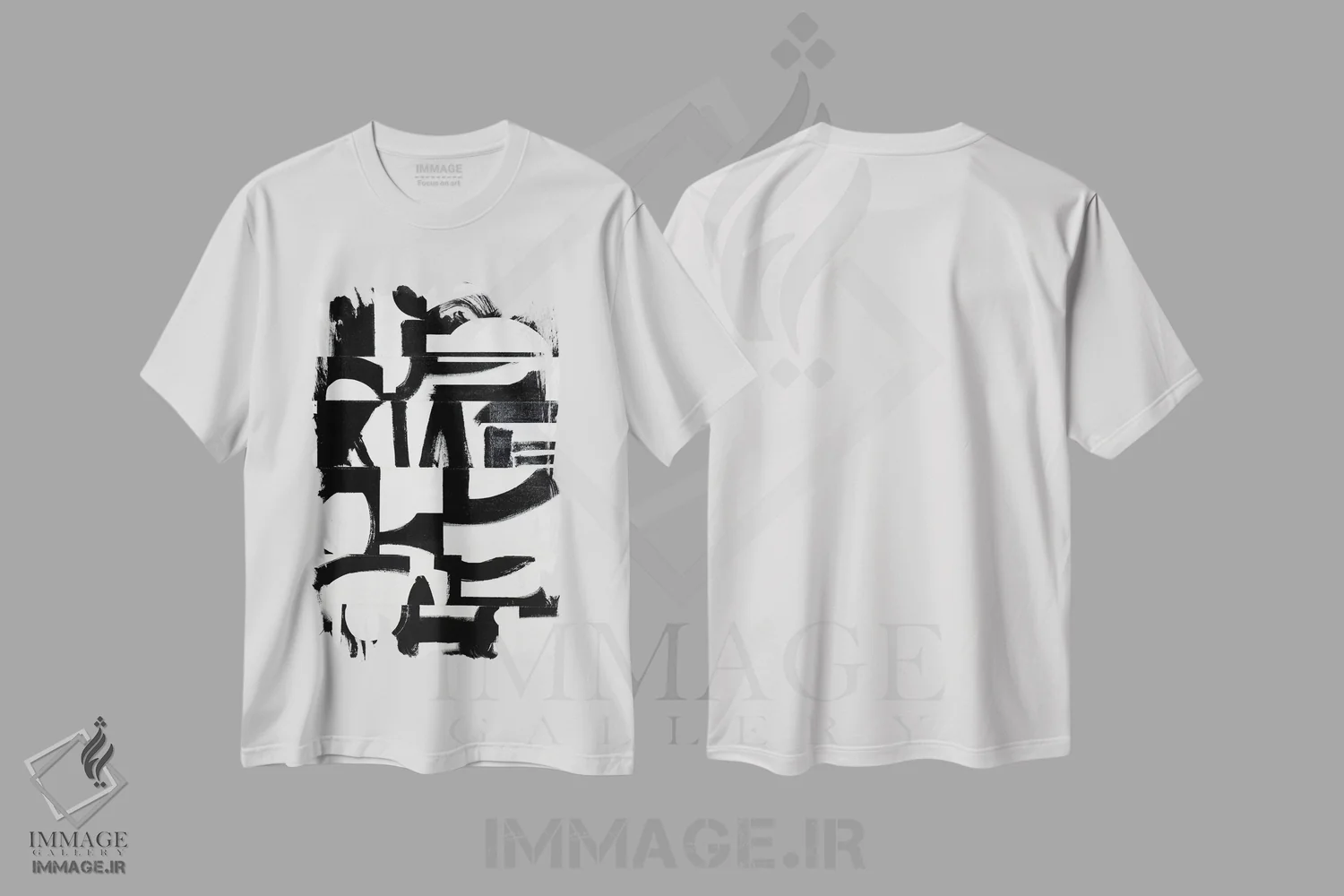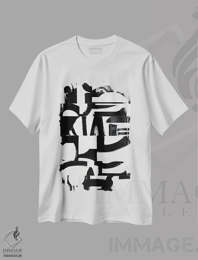 تی شرت آبستره «عناصر پر رونق V10»؛ مینیمالیسم سیاه وسفید