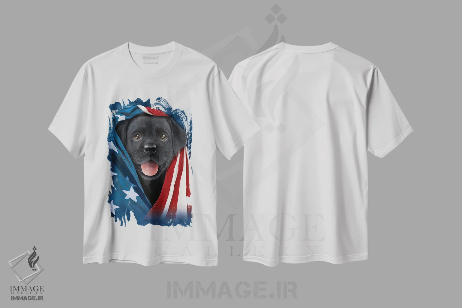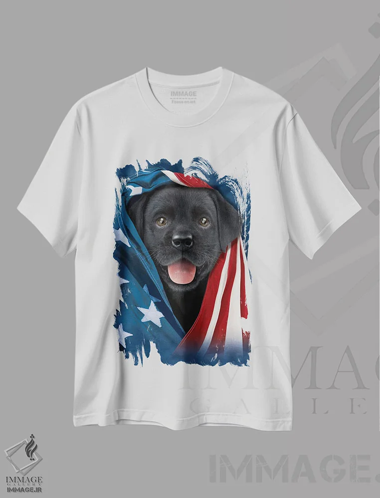 تیشرت سفید طرح دار توله وطن پرست دو، دکور آمریکایی اثر وینسنت های | immage.ir